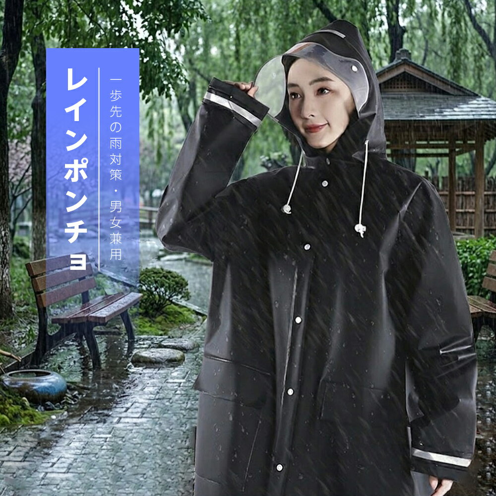【クーポンで1,780円】レインコート 反射テープ レインポンチョ 男女兼用 3way 防水 二重袖 レインバイザー付き 撥水 通学 通勤 カジュアル おしゃれ【予約販売】
