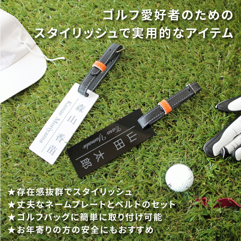 【名入れ彫刻】 ゴルフタグ ネームプレート マーカー 名札 アクリル ベルト付き キャディバッグ スーツケース スクエア 黒 白 ブラック ホワイト 旅行カバン 迷子札 ギフト 記念品 母の日 父の日 プレゼント