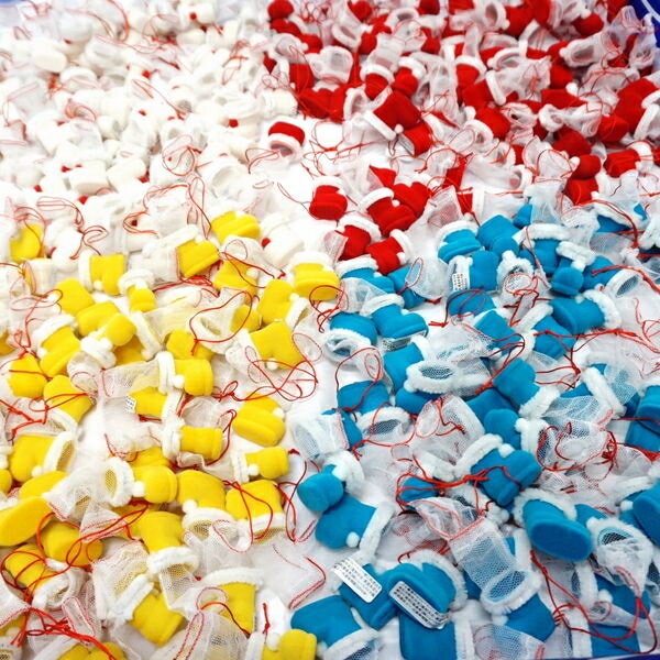 サイコロ出た数だけクリスマスミニミニブーツ(チョコレート入)プレゼント(400個) 【商品番号】No.21071 【商品説明】サイコロを振って、出た目の数だけプレゼント! 出た目の数のお菓子がもらえるイベントセットです。最高6個当たります。(出る目の確率なので、参加人数が増える事が予想されます)一人平均4個当たるとして、約100名様が参加できます。クリスマスのイベントやパーティーに! 町内会のイベントや、お店でのイベント、子供会のイベントと、お手軽にミニイベントができます。 【セット内容】ミニミニブーツ4色 各100個(指定不可)プール 1個サイコロ 1個袋 100枚 【大きさ】ブーツ高/3cm
