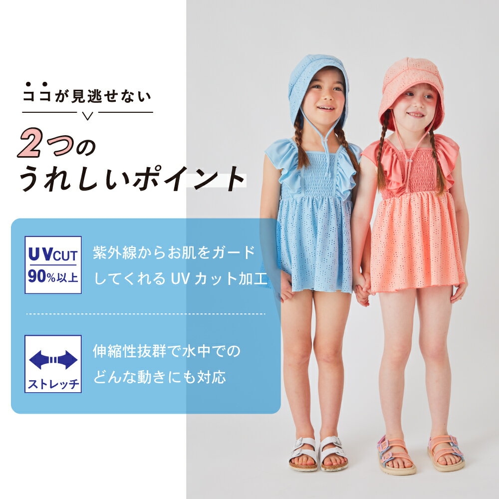 UVカット率90% ワンピース 水着 | キッズ 子供 子供服 キッズ服 女の子 子供水着 キッズ水着 女の子水着 水泳 スイムグッズ スイムウェア プールグッズ 保育園 プール 海 川 uv uvカット 速乾 日焼け防止 ワンピース水着 上下セット 25SS 242337008