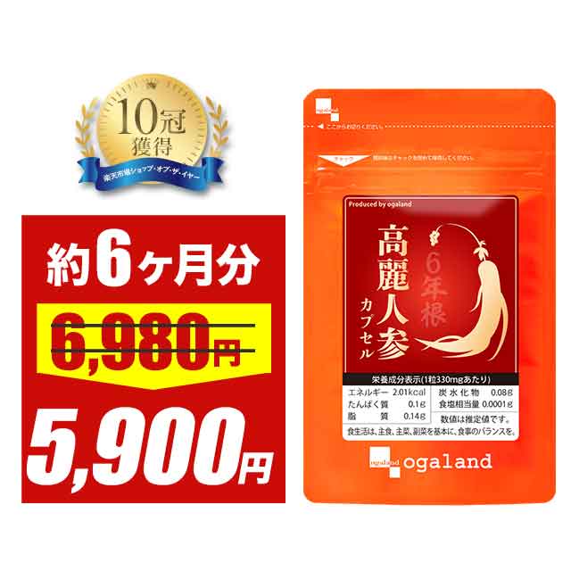商品の詳細 名 称 高麗人参100 [ソフトカプセルタイプ] 内容量 1袋12g(400mg×30粒) 原材料 醗酵紅参エキス末(韓国製造)、ジンセンベリーエキス末(韓国製造)、オリーブ油、食用こめ油、食用ぶどう油、食用アマニ油、食用精製加工油脂、パン酵母抽出物、モズク抽出物/ゼラチン、グリセリン、グリセリン脂肪酸エステル、パプリカ色素(大豆を含む)、ビタミンE、着色料(酸化チタン) 栄養成分表示(2粒800mgあたり) エネルギー:4.63kcal、たんぱく質:0.22g、脂質:0.33g、炭水化物:0.19g、食塩相当量:0.0004g 1日分の目安量と摂取方法 1日2粒を目安に、水などと一緒に噛まずにお召し上がりください。 保存方法 直射日光、高温多湿を避けて冷暗所に保存してください。 ※お召し上がりの前に、必ずご確認ください。 ・原材料をご確認の上、食物アレルギーがご心配な方はご使用をお控えください。 ・体質や体調によってまれに体に合わない場合があります。その際はご使用をおやめください。 ・天然の素材を使用しているため、色・香りが変わることがあります。 ・本品は、多量摂取により疾病が治癒したり、より健康が増進するものではありません。 1日摂取目安量を守ってください。 ・疾病に罹患している場合は医師に、医薬品を服用している場合は医師、薬剤師に相談してください。 食生活は、主食、主菜、副菜を基本に、食事のバランスを。 広告文責・製造・販売 株式会社エバーライフTel.0120-454-666 運営会社所在地 〒810-0001 福岡県 福岡市 中央区 天神2-5-55 アーバンネット天神ビル 区分 健康食品/日本製 メーカー希望小売価格はメーカーサイトに基づいて掲載しています。(PDFファイル:131MB)この商品はポイント2倍です。
