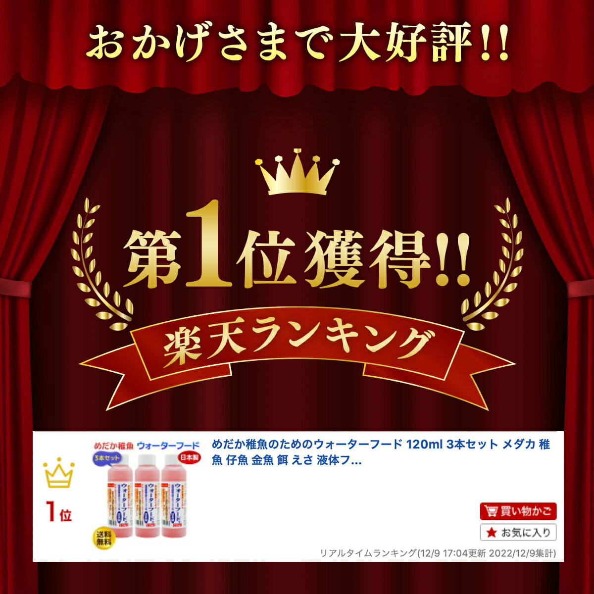 めだか稚魚のためのウォーターフード 120ml 3本セット メダカ 稚魚 仔魚 金魚 餌 えさ 液体フード 生菌活力剤 日本製 送料無料