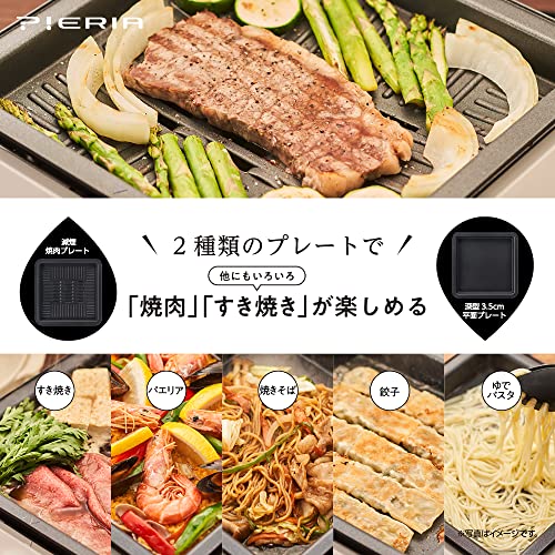 ・ナチュラルウッド HPX-101 NWD・2種類のプレートで「焼肉」「すき焼き」をはじめ他にもいろいろいろ楽しめる。・油がプレートの穴から落ちるから煙を大幅カット、油ハネ大幅カット、ヘルシー調理。・プレート、フタ、トレーは水洗いOK。・専用ベルトで縦置き収納ができます。沼津りえ先生 監修 レシピブック付き。・電源AC100V 50/60Hz 定格消費電力:1000W 電源コード長さ:約1.2m、温度調節範囲:保温〜230℃(強)説明 2種類のプレートで「焼肉」「すき焼き」をはじめ他にもいろいろいろ楽しめる。