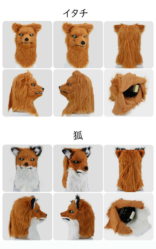 口を開けることができる♪ パーティーグッズ マスク コスプレ 狐 狼 イタチ 動物 ふわふわ リアル 面白グッズ ラバーマスク フルマスク お面 余興 ハロウィン なりきり 面白い 被り物 ゲーム 宴会 忘年会 仮装 変装 cosplay ei156t2t2c6