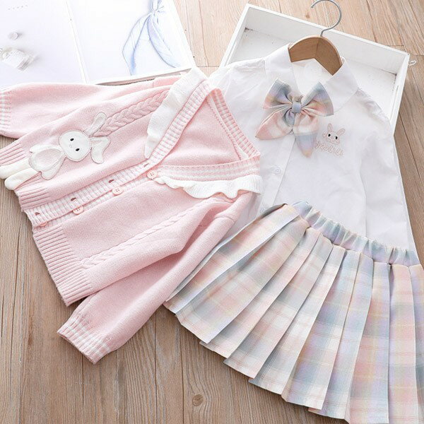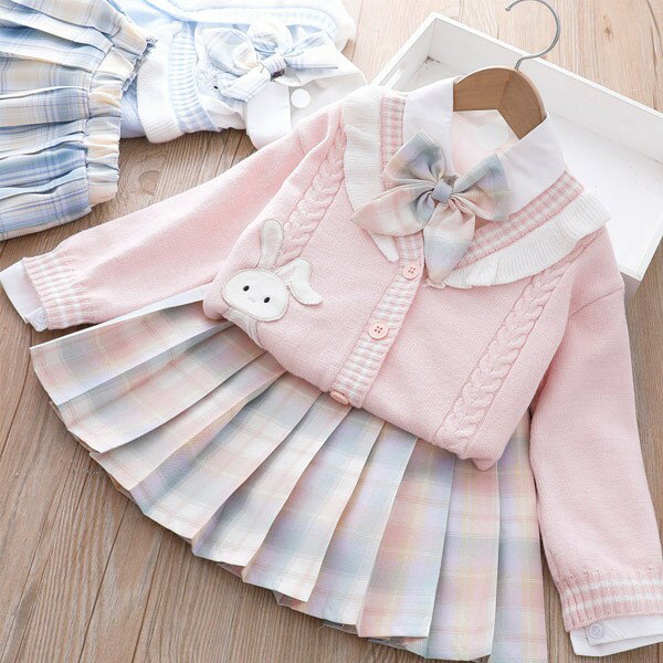 入学式 卒業式 制服 女の子 4点セット JK 春 秋 小学生 中学生 高校生 ジュニア 中学 受験 大きいサイズ ゆったりサイズ 卒服 カーディガン 入園祝い ギフト 卒園式 七五三 お受験 発表会 ピンク ブルー 110 120 130 140 150 160 dg100m4m4m4