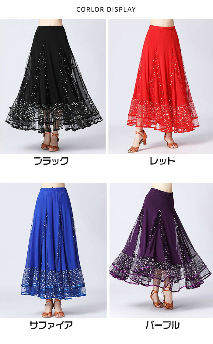 社交ダンス スカート 単品 スタンダード レッスンウェア グラデーション ワルツ タンゴ モダン ドレス 大きい裾 舞台 練習着 ステージ 衣装 フリル モダン タンゴ モダン ダンスウェア 紫 赤 黒 青 dm105x1x1m6