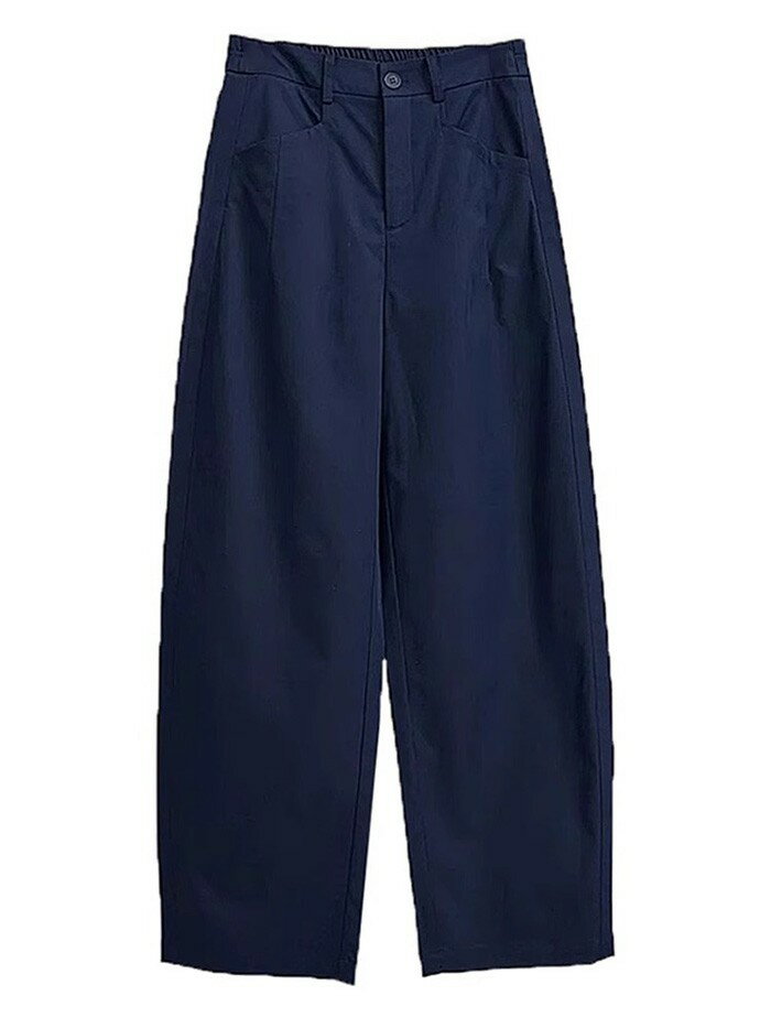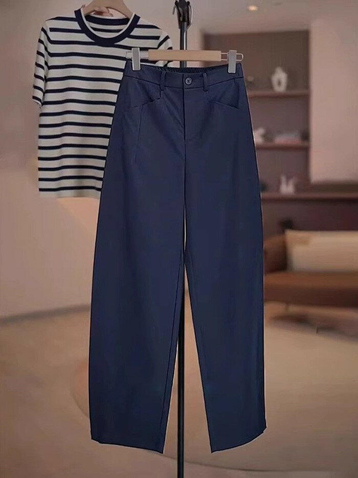 バレルパンツ レディース ワイドパンツ 紺色 コットン風 春夏 カジュアル ゆったり ハイウエスト 韓国風 おしゃれ 体型カバー バレルレッグパンツ レディース ファション nq008n1n1m6
