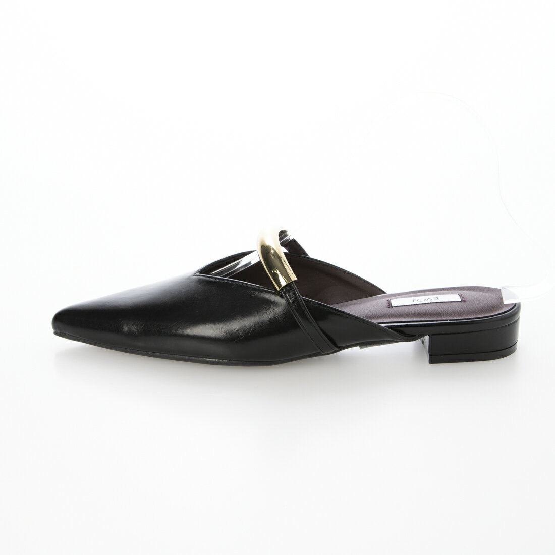 【公式】【SALE/12%OFF】イーボル EVOL 柔らかい・クッション入り ゴールドモチーフフラットミュール サンダル ブラック 25ss 新作 靴 レディース パンプス ミュール Vカット ゴールド モード シンプル ローヒール 大きいサイズ LL 疲れにくい