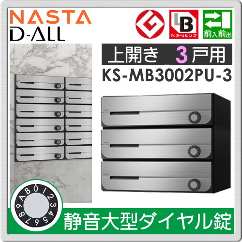 【当店厳選商品ポイントUP中】【無料★特典対象】 NASTA ナスタ D-ALL ディーオール KS-MB3002PU-3L 静音大型ダイヤル錠 上開き 3戸用 前入前出し 屋内タイプ 集合住宅用 マンション アパート 店舗 業務用 公共 郵便ポスト 郵便受け