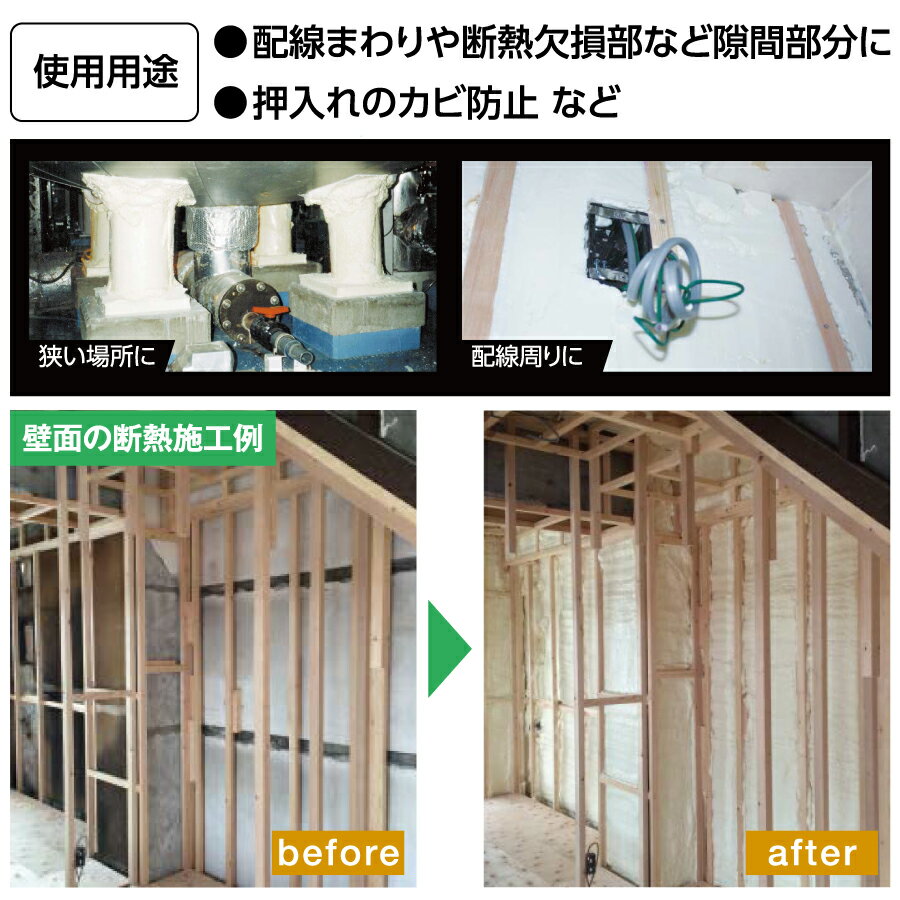 商 品 詳 細商品名インサルパック HYPER #30NF 6セット/1箱 品番:IP30NF重量/セット内容量:724g 総重量:1.5kg発泡体積/セット20〜25L・厚み20mmで約1方メートル ※気温や湿度などの外的要因や使用方法、施工箇所により、数値は増減します。材質主成分:ウレタン樹脂セット内容/セット・A液(イソシアネート)×1 ・B液(ポリオール)×1 ・ガン付きホルダー×1 ・注入ホース×1 ・先細注入ホース×1 ・AX-NFノズル×3 ・取扱説明書×1仕様・2液エアゾールタイプ(使い切りタイプ) ・フォーム色:クリーム(硬質ウレタン) ・硬化時間:約3〜4分 ・逆流防止弁付ノズルで安心施工です。 ・多用途:充てん、吹き付け ・ノンフロンタイプ、JAIA F☆☆☆☆規格品 ・ショルダーストラップで、楽に施工できます。備考※沖縄・離島は別途送料がかかります。ご注文前にお問い合わせ下さい。 ※こちらの商品は時間指定不可になります。 ※メーカー直送のため、代引き支払いできません。注意事項※天井面への施工は不向きです。 ※リニューアルに伴い、パッケージ・内容等予告なく変更する場合がございます。予めご了承ください。 ※イメージ画像は使用するブラウザ・モニターにより色が違って見える場合があります。