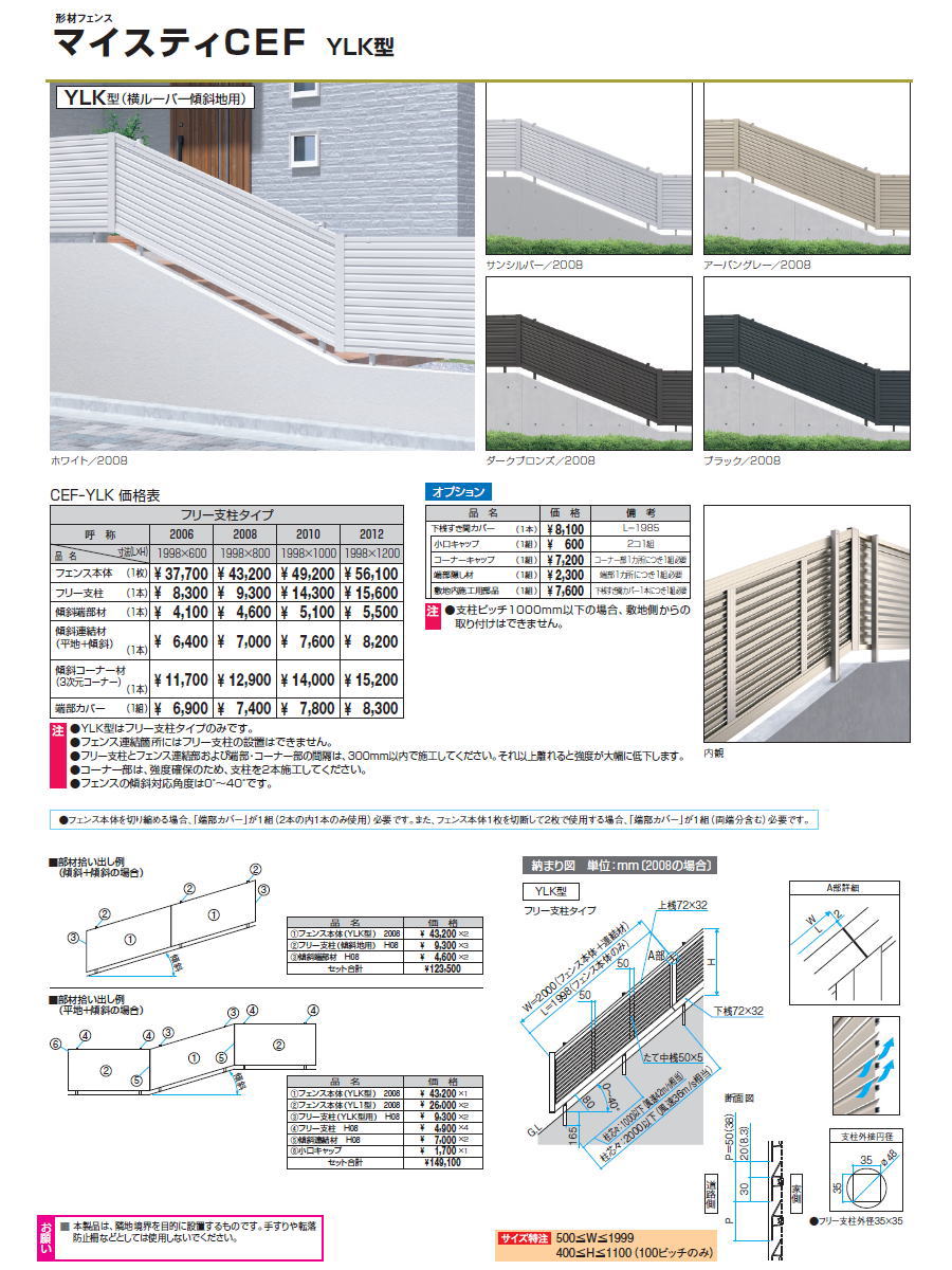 商 品 詳 細商品名三協アルミ マイスティ YLK型 端部カバー(1組) H800サイズ(mm)H=800用カラーサンシルバー、アーバングレー、ダークブロンズ、ブラック、ホワイト材質アルミ形材注意事項部品のみになります。フェンス・その他部材は別途お買い求め下さい。ご確認下さいこの商品ページの商品は、部品のみです。フェンスやその他部品は別途お買い求め下さい。部材について設置画像はイメージです。部材等が別売の商品も多数ございます。部材の不足等での保証は致しかねますので内容を必ずご確認頂ますようよろしくお願い申し上げます。施工について※施工はお客様にて責任を持ってご手配ください。 ※施工には、専門的な知識と、工具、技術が必要となります。 ※お近くの施工業者様に設置を依頼して頂くようお願い致します。 ※お近くの施工業者様に相談の上、設置を依頼して頂くようお願い致します。関連商品検索はこちらから 可愛い・おしゃれな屋外設置のフェンスを多数準備・境界、目隠しフェンスをDIY・施主支給で!各メーカー人気フェンスのご紹介 【LIXIL/リクシル】フェンスAB・フェンスAA・ライシスフェンス・サニーブリーズフェンス・アルメッシュフェンス・ハイミレーヌRフェンス・アメリカンフェンス1型・ヴィア・ル・クラシコ フェンス・アーキキャストフェンス・キャスティナシリーズ・アプローチ ルナフェンス・ラフィーネフェンス・コラゾンシリーズ・アルミ鋳物フェンスシリーズ・ミニフェンス・木樹脂フェンス・グリッドフェンス・ハイグリッドフェンス【三協アルミ 形材フェンス】レジリア・レジリアハイタイプ・ジーエムLight・シャトレナ・フレイナ・フィオーレ・スーパー速川・ニューアイシャノン・エルファード・ララミー・ニュービラフェース・エクモアZ・モンブレム・速川・大和塀・比美・カムフィX・ニュータウンリード・ニューアイシャノンG【三協アルミ 鋳物フェンス】キャスタイル・ファンセル・キャスリート・プロヴァンス・キャスモア・ハーベリー・マイリッシュS・ジョイラル・フェアル・エルジェント・ラビロス・美流(びりゅう)・アリッサム・ビアンソード・レガンス・グランクロス・ミニフェンス?ファンセル・ミニフェンス?デルモン・ミニフェンス?庭用心・FIXフェンス ルーネス・ファンセル・ニューファンタス当店おすすめフェンス・ランキングをご紹介しております。ランキングページから、お求めのフェンスを検索する事ができます。 ★フェンス 売れてる人気ランキングはこちら ●おすすめ目隠しフェンス のカテゴリ ●鋳物フェンス のカテゴリ ●竹垣フェンス のカテゴリ ●スクリーンフェンス のカテゴリ ●アクセントポール のカテゴリ ●フェンス全体 のカテゴリ ●関連商品 三協アルミ 三協立山 マイスティ YLK型 フェンス本体 H800 横ルーバー傾斜地用 CEF-YLK-08 27,370円三協アルミ 三協立山 マイスティ YLK型 フリー支柱 H800 5,810円三協アルミ 三協立山 マイスティ YLK型 傾斜端部材(1本) H800 2,880円三協アルミ 三協立山 マイスティ YLK型 傾斜連結材(平地+傾斜)(1本) H800 4,400円三協アルミ 三協立山 マイスティ YLK型 傾斜コーナー材(3次元コーナー)(1本) H800 8,140円 三協アルミ 三協立山 マイスティ YLK型 端部カバー(1組) H800 4,700円三協アルミ 三協立山 マイスティ 下桟すき間カバー 本体 1本 SC-12-20W 4,950円三協アルミ 三協立山 マイスティ 下桟すき間カバー 小口キャップ 1組 SCK-02 380円三協アルミ 三協立山 マイスティ 下桟すき間カバー コーナーキャップ 1組 SCT-07 4,380円三協アルミ 三協立山 マイスティ 下桟すき間カバー 敷地内施工用部品 1組 SCU-1 4,700円