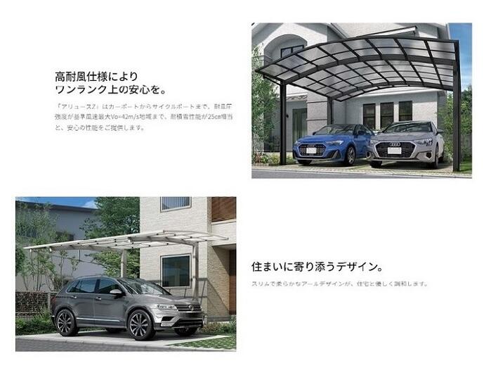 ---------------------------------------- 北海道・離島の方も大歓迎! ▼まずはお問い合わせください▼ ---------------------------------------- 安心してご購入していただくため、 フリーダイヤル0120-614-410 (平日9:30-17:30) 又は画面左下の【ショップへ相談】 にて お問い合わせをお待ちしています。 サイズやデザインなど商品の仕様、 オプション追加時等の価格のご確認、 ご自宅に取り付け可能かのご確認、 納期のご確認、その他ご不明な点など まずはお問い合わせください。 ---------------------------------------- ※弊社よりご連絡をご希望される場合 ---------------------------------------- 【ショップへ相談】から ・ご連絡先 ・ご希望の時間帯 のみお送りくださいませ。 担当よりご連絡致します。 (078-846-4409よりお掛け致します) 【商品2年&施工10年あんしんW保証付】 エクスショップ楽天市場店は カーポート・駐車場屋根も ・商品のみのご注文 ・屋外設置工事込みのご注文 ともに全国対応致します。 (各種オプション対応可) 【商品内容】 ※各画像はタップすると拡大できます 【YKKAPの大人気カーポート アリュース】 高い耐風性能と施工性を両立させていた「レイナポートグランシリーズ」をフルリニューアルしたアリュース。 さらなる機能性、意匠性、施工性を兼ね備えた次世代スタンダードカーポートです。 サイズやカラーバリエーションも豊富。 ご自宅にマッチした商品を選択していただけます。 ※サイドパネル、物干し、照明など各種オプションはお問い合わせください。 積雪対応:20cmまで積雪対応 基準風速:34m 【サイズ】 ▼規格幅 2399mm / 2549mm / 2699mm / 2999mm ▼規格奥行 5052mm / 5400mm / 5768mm ▼屋根高タイプ 標準柱仕様(有効高 約2,200mm) / ロング柱仕様(有効高 約2,500mm) / H28柱仕様(有効高 約2,800mm) 【カラー】 プラチナステン ホワイト ブラウン カームブラック ピュアシルバー 【屋根材】 【既存のカーポートの解体・撤去も致します】 カーポートの設置工事の際、 既存のカーポートの解体・撤去も承ります。 ご希望の場合、ご注文時に【ショップへ相談】より お問い合わせ頂けましたら、お見積りを提示致します。 もちろん、ご注文前でもご相談を承ります。 (お見積りのみのご依頼もお受け致しております。) 現地調査・お見積の作成は無料でございますので まずは、お気軽にお問合せくださいませ。 商品手配、カーポート解体・撤去、設置工事 全てをエクスショップ楽天市場店に お任せくださいませ。 【特記事項】 ▼ご注文時の表示価格は、最小サイズかつ 商品本体のみの価格でございます。 ------------------------------ ▼最小サイズ以外のご注文やオプションの追加等、 ご注文内容によって価格が変わる場合がございます。 ------------------------------ ▼現在、最小サイズ以外のご注文や工事込みで ご注文頂きましても、表示価格が変更されません。 その為、下記の流れにて進めさせて頂いております。 ご不便をお掛けしまして、大変申し訳ございません。 【商品のみご購入】 =価格が変わります場合= ご注文後にお見積書をお送り致します。 ご了承賜りましたら、配送手配を致します。 =価格変更がない場合= 速やかに配送手配を致します。 【工事込みのご注文】 現地調査が必要でございます。 ご注文後、日程調整等の為、 弊社よりご連絡させて頂きます。 現地調査後、お見積書をお送り致します。 内容・価格等をご確認頂きまして、 ご了承賜りましたら、お手続きを進めて参ります。 ------------------------------ ※商品のみのご購入・工事込みのご注文、 どちらもお見積り額をご了承頂くまで ご注文を確定致しませんのでご安心ください。 お見積額にご了承頂けない場合は無償にて キャンセル可能でございます。 ------------------------------ ●お見積りも無料でお受け致しております。 お気軽に画面左下の"ショップへ 相談"より お申し付けくださいませ。 【お届けに関するご注意点】 ・商品の手配状況次第では、配送予定日より早く お届けする場合がございます。 ・受注生産品、その他確認事項等が発生した場合、 配送が遅れる場合がございます。 ※いずれの場合も速やかにお客様にご連絡致します。 商品の特性上,納品後の返品・交換はお受け致しかねますので、ご購入前の商品詳細・サイズ・色・その他のご相談を歓迎致しております。 是非ともお申し付けください。 【配送遅延の免責事項】 大雪・大雨・地震・台風その他の天災等により配送・施工に遅延が生じる場合、キャンセル不可・人工代の保証等は致し兼ねます。 >商品に関するご質問・お見積り・ オプションの追加・納期のご確認、 確認その他ご不明な点などは、 フリーダイヤル0120-614-410 (平日9:30-17:30)又は左下の 【ショップへ相談】 からご連絡ください。 ※お見積りのご依頼のみ、正確なお見積額算出の為、 商品のお届け先(工事込みの場合は設置先)の 都道府県名と市町村名をご教示くださいませ。