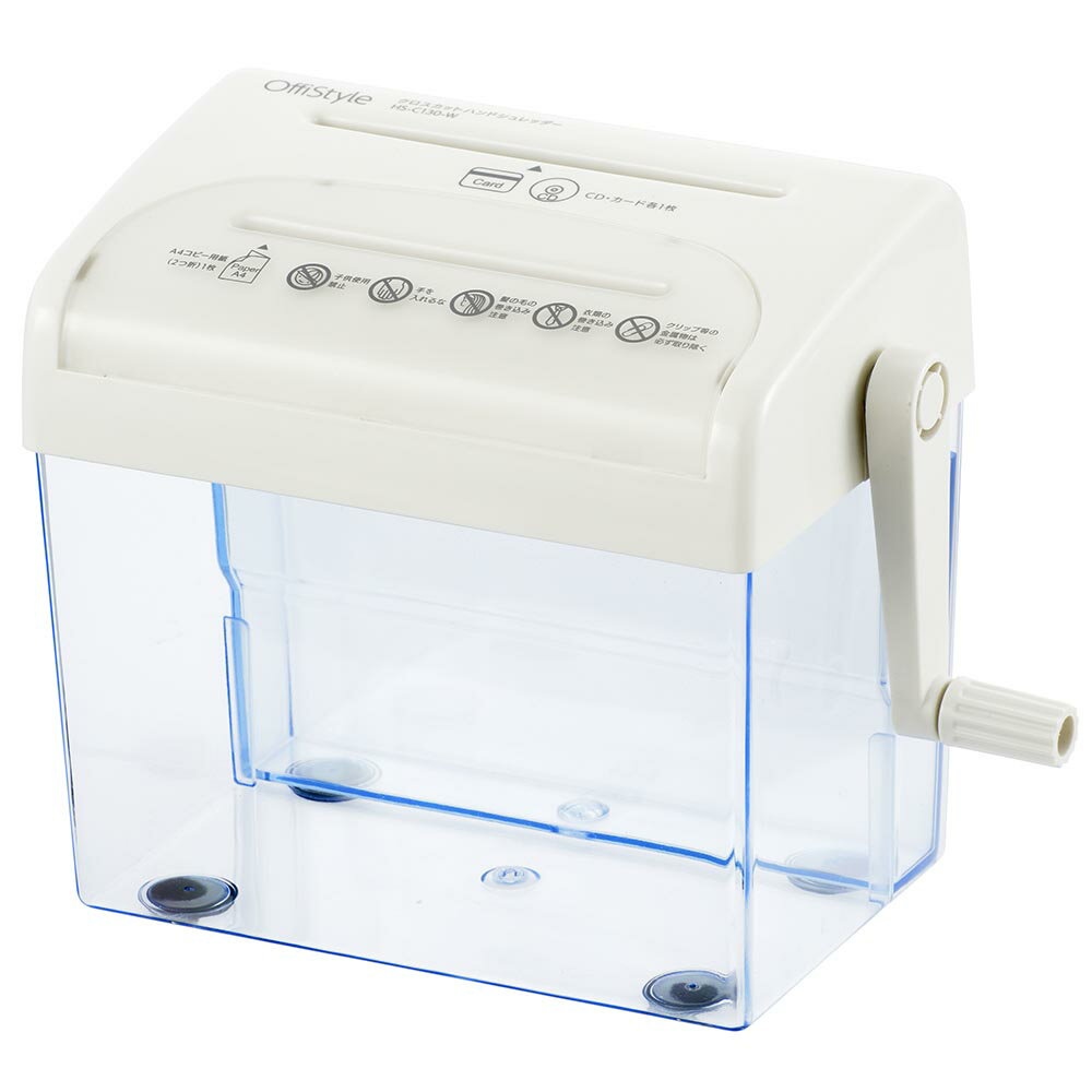 シュレッダー 手動 OffiStyle クロスカットハンドシュレッダー ホワイト|HS-C130-W 00-5646 オーム電機 OHM