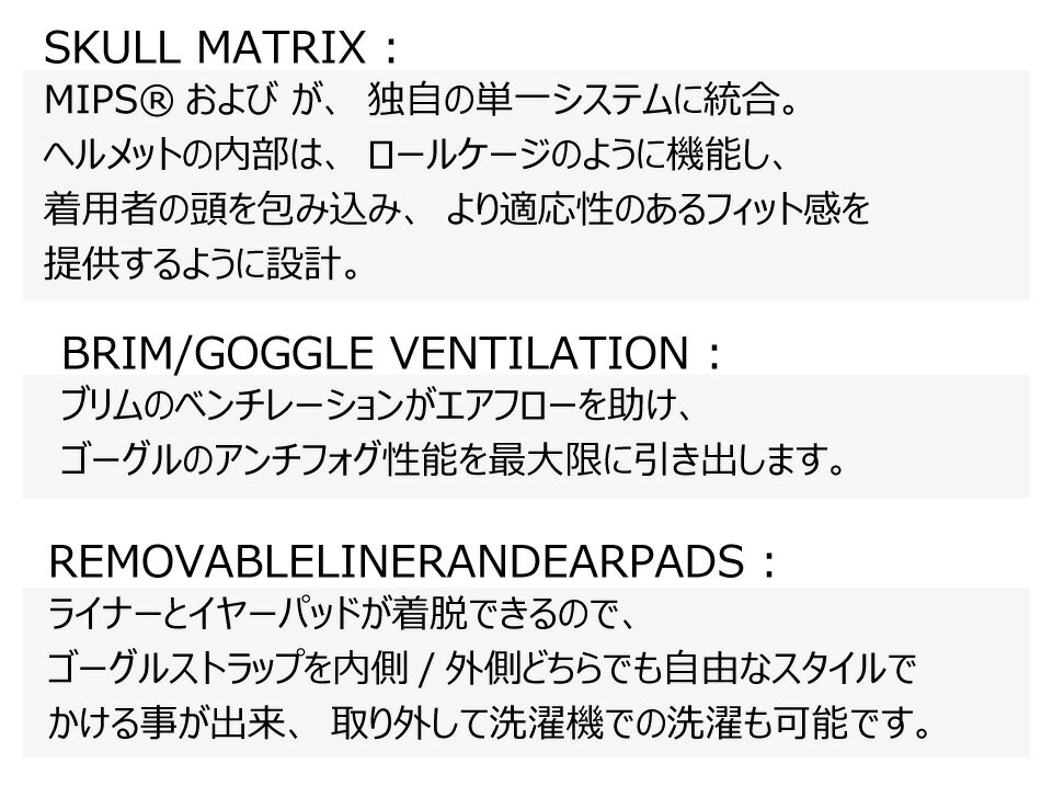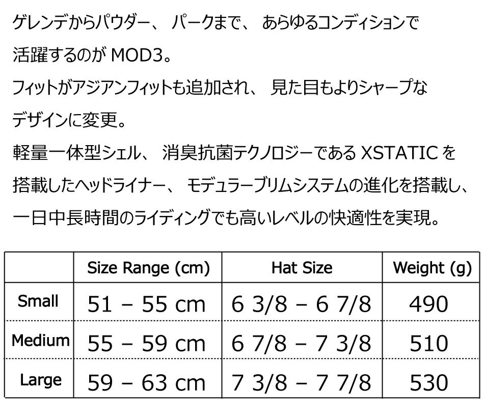 メーカー希望小売価格はメーカーカタログに基づいて掲載しています。 25-26 オークリー ヘルメット モッド3 アジアンFit フォージドアイアン OAKLEY Helmet MOD3 Mips ForgedIron AsianFitBoaシステム 軽量 スノボ スキー お買い物の前に!! *商品・カタログ・ブランドホームページの画像を使用しております。 画像の種類・ご覧の環境により実物とカラーが多少異なって見える場合がございます。 *当店は、実店舗とネットショップの計3店舗で在庫を共有しております。 当店より御注文確定のご連絡をお送りさせて頂くまでは、御注文確定ではございません。 買い物カゴに商品を入れられる状態でもタイミングによっては在庫が完売の場合がございます。 その場合は、メーカーに在庫を確認させて頂きお取り寄せさせて頂きます。 メーカーにも在庫がない場合はご注文をキャンセルとさせて頂きます。 *何かご質問等ございましたら、メール・電話にてお気軽に御問い合わせください。 スノーボード 25-26 オークリー ヘルメット モッド3 アジアンFit フォージドアイアン OAKLEY Helmet MOD3 Mips ForgedIron AsianFitBoaシステム 軽量 スノボ スキー スポーツ・アウトドア ウインタースポーツ スキー・スノーボード用アクセサリー ゴーグル オークリー オークレー OAKLEY Goggleゴーグル winter2025 2024-25 2025スノボ スノボー EXTREME エクストリーム 角野友基 カドノユウキ 平野歩夢 ヒラノアユム 國母和弘 コクボカズヒロ 高橋沙羅 タカハシサラブランドストーリー :OAKLEY オークリー 1975年、ジム・ジャナードによってモトクロス・BMXのハンドグリップメーカーとして創設される。その後ゴーグルの開発を経て、80年代にサングラスを主力商品としてアイウェア業界に参入。機能性を備えたレンズとデザインを持つスポーツサングラスのメーカーとなり、90年代にはアパレル、フットウェア、リストウォッチ市場へ進出する。機能とデザインの双方を損なうことなく融合させた製品は、米軍特殊部隊SEALsやデルタフォースで制式採用されたほか、ロードレース、スノーボード、野球、ゴルフ等の数多いアスリートがオークリーの製品を愛用している。 「Technology Wrapped in Art」(芸術的なデザインによって包括された技術)をメインコンセプトとし、「あらゆる状況下においてどのように眼を守るか」をテーマに技術開発を続け、全世界で約600の特許を取得している。社名の「Oakley」は創業者ジム・ジャナードの愛犬(イングリッシュ・セッター)の名前である。 商品名 25-26 オークリー ヘルメット モッド3 アジアンFit フォージドアイアン OAKLEY Helmet MOD3 Mips ForgedIron AsianFitBoaシステム 軽量 スノボ スキー / 説明 新デザインになったMOD3(エムオーディースリー)なら、山での滑りを一本ごとにすべて満喫できます。 ライダーが最高の一日を過ごせるように、MOD3にはライダーが自信を持って雪上で一日を乗り切るために必要なスタイル、快適性、テクノロジーがすべて搭載してあります。 フロントに大きな通気口を備えた独自の調節可能な通気システムにより、ヘルメットから熱気をスムースに放出でき、カービングターン中やリフトで頂上に向っている時にも快適さをキープできます。 MOD3は軽量で薄型のデザインながら、Mips、BOA 360 フィットシステム、気温が下がったときに暖かさと通気性を保つプレミアムなPolartec Power Gridライナーを標準装備しています。 数多くの優れた機能を備えたMOD3は、冬山のバカンスに理想的な、山で存在感を示せるヘルメットです。 詳細 - 新デザイン:シルエット、表面加工、外側の細かい形状を刷新し、大胆なデザインと高い機能性を持つ新型MOD3 - フィット:BOA 360°フィットシステムに含まれる調節用ダイヤルが、一人ひとりに合った確実なフィット感を実現。 スモール (51-55cm) / ミディアム (55-59cm) / ラージ (59-63cm) - 重量:MOD3は軽量なポリカーボネートシェルデザインのため、一日中ずっと快適な装着感 - プロテクション: MIPS(多方向衝撃保護システム)によるセーフティシステムはヘルメットに内蔵された摩擦軽減のためのレイヤーで、衝突時に脳に伝わる回転運動を軽減し、着用者の頭部にダメージを与える可能性のある衝撃力を抑制 - ベンチレーション:MOD3は独自の調節可能な通気システムとフロントゴーグルの通気口を備えているため、ヘルメットから熱気をスムースに放出でき、カービングターン中やリフトで頂上に向っている時にも快適さをキープ - ライニング:Polartec Power Grid:ライダーの頭部の輪郭に合わせて立体成形された、湿気を逃がし、取り外しと洗濯が可能な、通気性のあるライナー - FIDLOCK‐フィドロックバックル:スムースなマグネットロックでグローブを着用したままヘルメットの着脱が可能 - ゴーグルとの併用:オークリーのゴーグルとの併用に最適な設計 - ヘルメットトラベルバッグ&オークリーのデカール付 - ASTM F2040およびCE EN1077 認証 お買い物の前に!! *特典は数量限定になります。表記されていても急に終了する場合もございます。予め