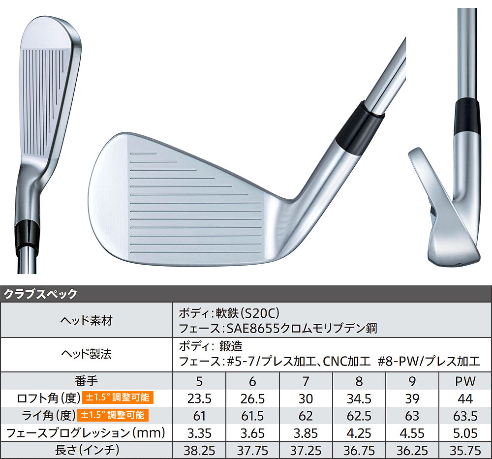 購入前に必ずお読み下さい。 こちらの商品はメーカーへの発注商品となります。 カスタムメイドの為、こちらの商品はキャンセル、スペック変更、返品などはお受けできません。 ご注文確認受付後、発注いたしますので、約6~10週間後に発送いたします。 パーツ欠品の場合は、別途納期ご案内いたします。購入前に必ずお読み下さい。 こちらの商品はメーカーへの発注商品となります。 カスタムメイドの為、こちらの商品はキャンセル、スペック変更、返品などはお受けできません。 ご注文確認受付後、発注いたしますので、約6~10週間後に発送いたします。 パーツ欠品の場合は、別途納期ご案内いたします。 長さ変更範囲 標準より-0.75~+0.25インチ(0.25インチ単位で調整できます) ※長さを変更することで、バランスが変わります ※ロフト角・ライ角は±1.5°の変更が可能です。 シャフト フレックス 総重量 (g) バランス +2ポイント調整可能 N.S.PRO 950GH R 403 D1 SR 405 S 406 X 412 ※上記バランス、総重量は、番手I#5、標準クラブ長さ、標準グリップ装着時の参考値になります ※参考値になりますので選択するグリップによってスペックは変動します ※バランス調整可能範囲は上記バランスより+2ポイント(0.5ポイント単位) ※軽くすることはできません 変更可能なカスタムグリップ ※グリップを変更することで、バランス、クラブ重さが変わります。グリップ重さが5g変わる事で±1ポイントバランスが変わります ※グリップの種類・下巻きテープ数により変化するバランスは多少異なりますので、ご了承下さい ※標準グリップからご指定のグリップに変更した場合やシャフトの種類により、グリップ下巻きテープ数が変わる場合がございます。ご了承下さい ※グリップのロゴ向きは変更できません ※グリップ下巻き数は縦巻き1枚(標準)、螺旋巻き1枚、螺旋巻き2枚、螺旋巻き3枚から選択いただけます。 ※グリップ未装着も選べます。