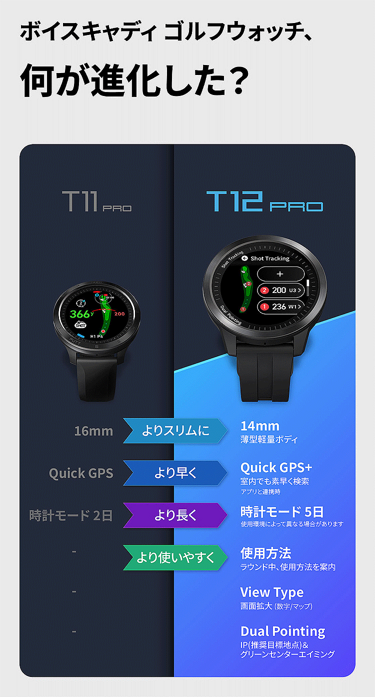 voice caddie ボイスキャディ 正規品 T12 PRO ティートゥエンティ プロ GPS watch ゴルフナビ ウォッチ 2026新製品 「 腕時計型GPS距離測定器 」 【当店在庫品】