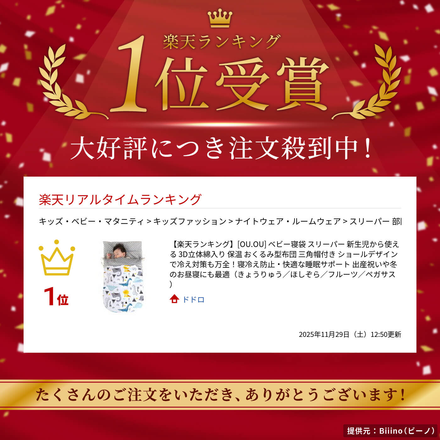【楽天ランキング】[OU.OU] ベビー寝袋 スリーパー 新生児から使える 3D立体綿入り 保温 おくるみ型布団 三角帽付き ショールデザインで冷え対策も万全!寝冷え防止・快適な睡眠サポート 出産祝いや冬のお昼寝にも最適(きょうりゅう/ほしぞら/フルーツ/ペガサス)