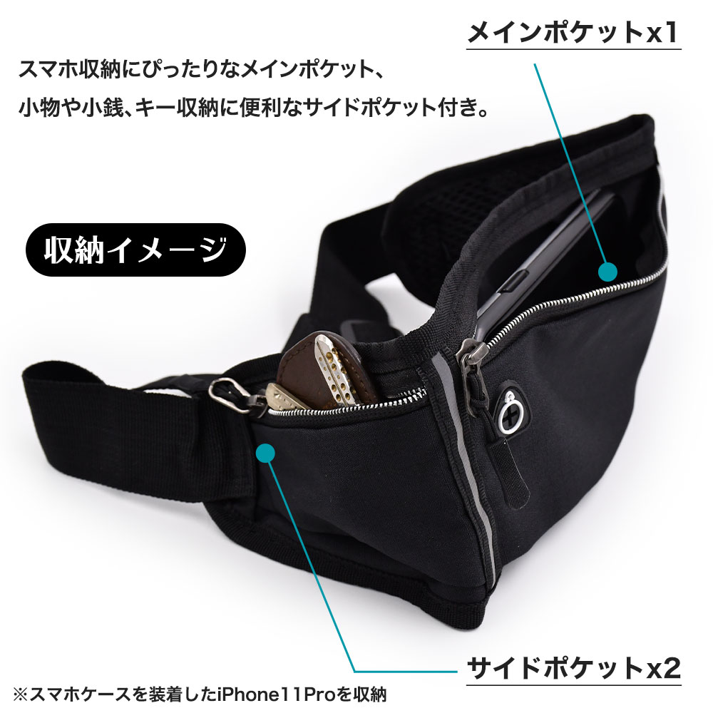 ジョギングやランニングなどのスポーツに最適! 紛失を防ぐジッパーポケット付きのウエストバッグ。 運動によるムレを抑え、吸湿・速乾性を高めたメッシュ仕様の裏地が◎ スマホ収納にぴったりなメインポケットx1 小物や小銭、キー収納に便利なサイドポケットx2 有線イヤホン用で音楽を聴きやすいイヤホンホール機能。 【サイズ】 収納部:(約)W45cmxH11cm ウエスト周り:(約)78cm〜100cm 6.5インチまでのスマートフォンを収納可能。 【スマホ収納対応機種例】 iPhone12/12Pro、iPhone12Mini、iPhone11Pro、iPhone11、iPhone8Plus,7Plus、iPhoneX/XS、iPhoneXR、iPhoneXSMax、iPhone7/iPhone8/SE3/SE2、Galaxy Note9,Note8,Note7、GalaxyS10,S9,S8,S7edge、GalaxyS10+,S9+,S8+、Xperia、他 【重量】 (約)83g 【素材】 ポリエステル、スパンデックス 【カラー】 ブラック、ピンク、ブルー、グレー お支払い・配送について ・ご入金確認は楽天市場にて処理されております。前払い決済をご指定された場合はご入金確認後の発送となります。・お支払い期日を過ぎた場合は自動でキャンセルさせていただきます。お支払いについてはこちらをご参考くださいませ。・不明点や配送に問題が生じた場合は事前にご連絡をさせていただきますのでご了承ください。(長期間ご連絡がとれない際はやむを得ずキャンセルとさせていただきます)・当店では領収書の郵送対応は原則的にお受け付けしておりません。ご所望の際はご連絡ください。