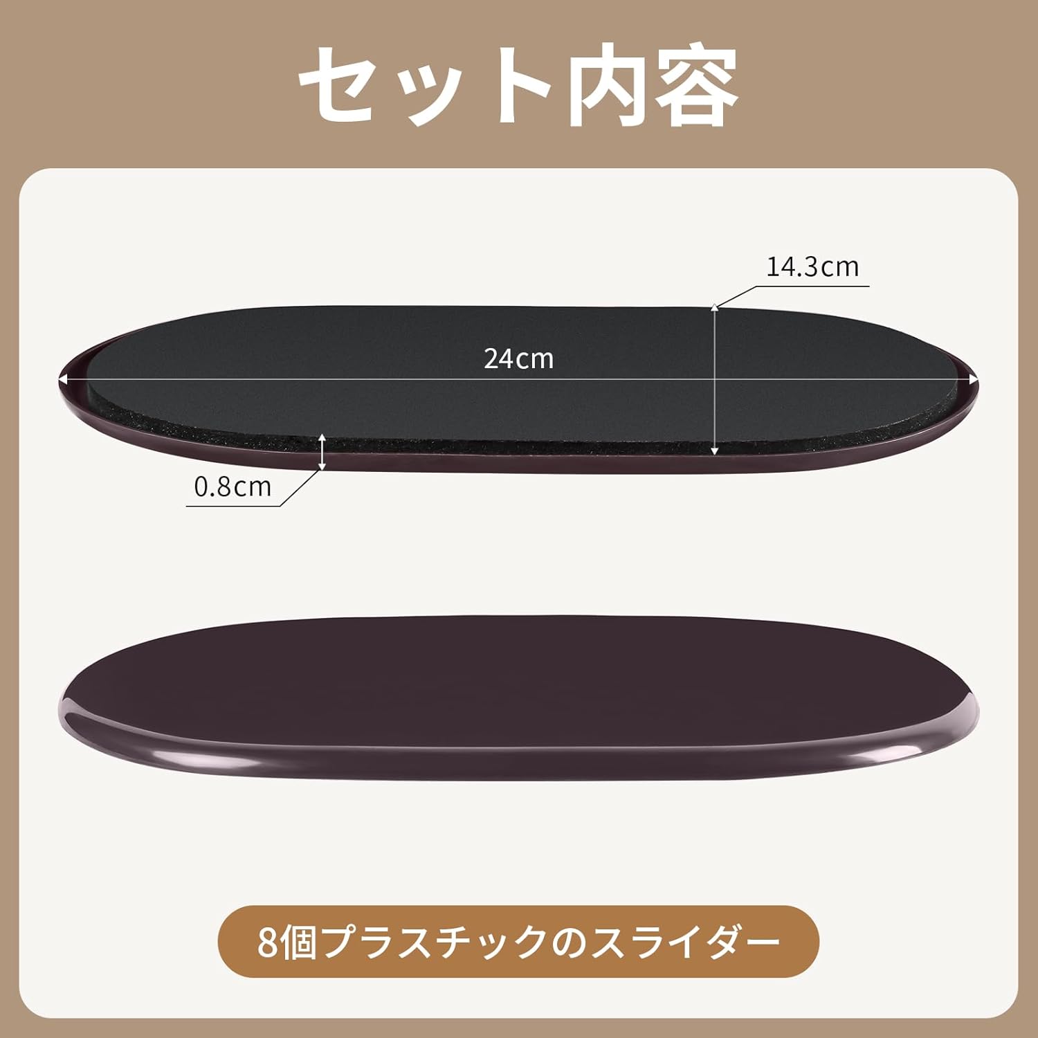 商品情報【カグスベール】パッケージ内容:4個プラスチックのスライダー+4個フェルトのスライダー。製品サイズ:240*145mm。カラー:ブラウン。【楽々移動できる】4個プラスチックのスライダーと4個フェルトのスライダーは、自分の都合によって使用します。ププラスチックのスライダーはカーペットに、フェルトのスライダーは木製の床に適しています。カグスベールを使用して、掃除や模様替えが一人でも気軽にできるようになります。【床傷防止・凹みを防止・防音】床面を守りながら滑らかな移動をサポート。また、厚みのある高品質な素材が家具の重量をしっかりサポートし、畳などのへこみを防ぎます。家具を移動している時に騒音と摩擦を減少することができます。【様々シーンにも適用】家具スライダーは木材、ガラス、金属、椅子、テーブル、冷蔵庫、ソファー、洗濯機、ベッドなどなどの重い家具にも大活躍です。【品質保証】Ezprotektはお客様に最優先のサービスをご提供しております。安心してお試しいただけるよう60日間のメーカー保証をお付けしております。保証期間内に不良が発生した場合は良品交換や返金などでご対応いたします。セット数量8個梱包重量0.3 キログラム十分な反りと大きさで、絨毯の段差もOK裏面が十分に反っているので、絨毯の境目も乗り越えていきます。大きいのでソファーの足にも使えます。簡単スムーズな移動可能重い家具に中身が入ったままでも楽々移動が出来る、模様替えに重いタンスも楽々移動~1人で模様替え出来ちゃいます。\新発売レビュー特典/Ezprotekt 家具スライダー カグスベール 重量用家具すべーる滑りやすく大型家具滑るシート 家具移動パッド フェルト家具スベール人気の家具移動 便利グッズ傷防止かぐすべーる防音静かで滑らか椅子脚カバー 脚キズ防止イス脚キャップ (ブラウン) 8個セット家具スライダー 重量用 4つ形の家具移動パッド 移動騒音防止 家具足保護 ベッドテーブル重物適用重い家具このスライダーソファ テーブル ベッドなど楽々に移動( 24x14.5cm ) 5