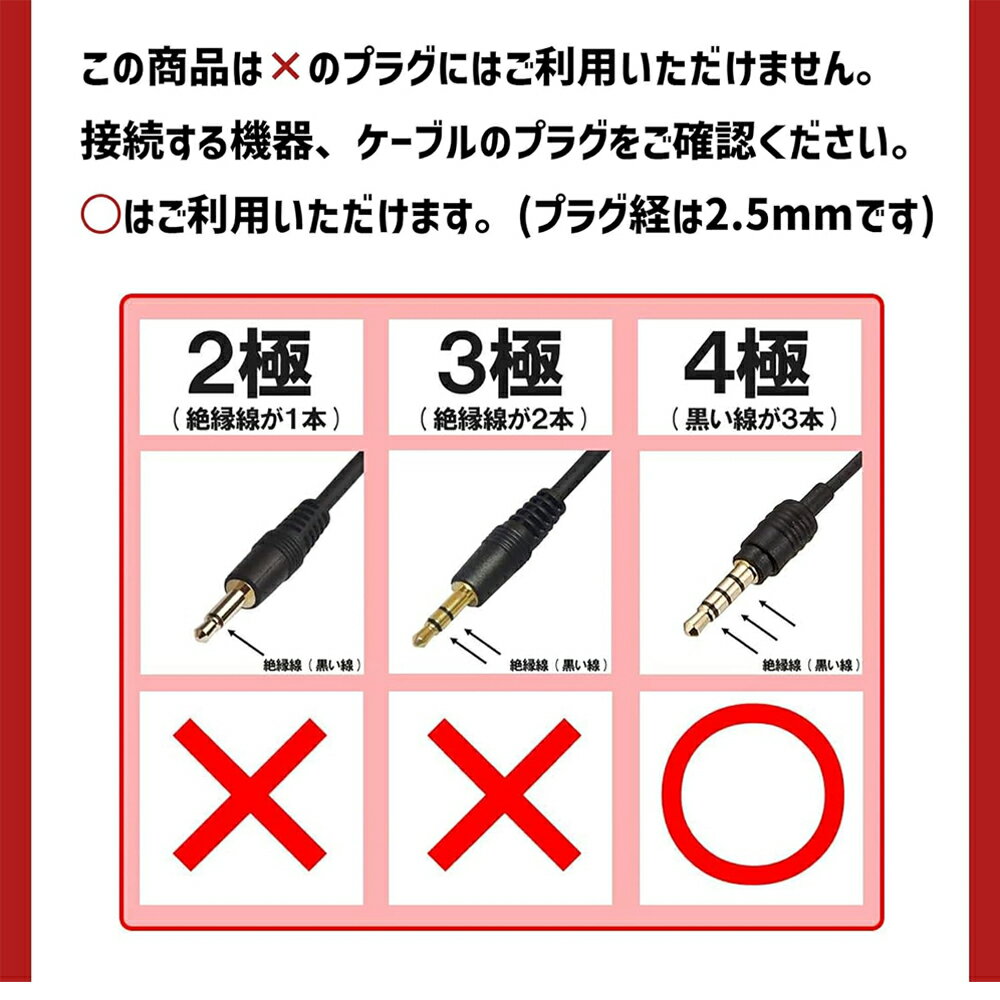 2.5mm4極ステレオ超ミニプラグ(オス-メス)の延長ケーブルです。 ・長さ2m ・両側:2.5mm4極ステレオ超ミニプラグ(オス-メス) ・2.5mm4極端子搭載の機器にご使用いただけます。 ※機器の仕様によりますので必ず4極対応かどうかご確認の上ご検討下さい。 また、2極端子や3極端子にはご使用になれません。 ■ご注意:必ずご確認下さい■ ※2.5mm4極ステレオ超ミニ端子専用です ※3極・2極モノラル機器にはご利用になれません。 ※3.5mmプラグ及び3.5mm端子にはご利用になれません。 予めご了承の上ご検討下さい。 ※こちらの商品はパッケージはありません。 ※簡易包装(PP袋入り)、取扱説明書は付属していません。 ■返品について お客様のご都合による返品・交換をご希望の場合は、商品到着後一週間以内にご連絡ください。 未開封・未使用品に限り、返品をお受けします。(※返品不可としている商品を除く) (※商品の初期不良による返品及び返金はお受けできません。) ※返品の際に発生する送料はお客様のご負担になります。 ※返品の場合の返金につきましては送料の返金は出来ません。 ※商品の初期不良による返品・別の商品への交換及び返金はいかなる場合においてもお受けできません。 (初期不良の場合は、検査済みの同新品商品をお届けします) ■万一、お届けした商品に不具合があった場合は 商品到着後1週間以内にご連絡下さい。 迅速に検査済みの商品を発送させていただきます。 ※商品の初期不良による返品・別の商品への交換及び返金はいかなる場合においてもお受けできません。 (初期不良の場合は、検査済みの同新品商品をお届けします) 【責任の制限】 当店では、商品の品質・安全等について万全を期しておりますが、万が一商品不具合または商品の使用及びお届けの遅延等によりお客様に損害が生じた場合は、当店の故意または重大な過失がある場合を除いては、一切の責任を負いかねます。また、当店が責任を負う場合につきましても、当店の責任範囲は商品の売買代金を上限とさせていただきますので、予めご了承ください。 上記、ご了承いただいた上、ご検討お願い致します。※機器の仕様によりますので必ず4極対応かどうかご確認の上ご検討下さい ■万一、お届けした商品に不具合があった場合は 商品到着後1週間以内にご連絡下さい。 迅速に検査済みの商品を発送させていただきます。 ※商品の初期不良による返品及びご返金はお受けできません。 予めご了承の上ご検討ください。