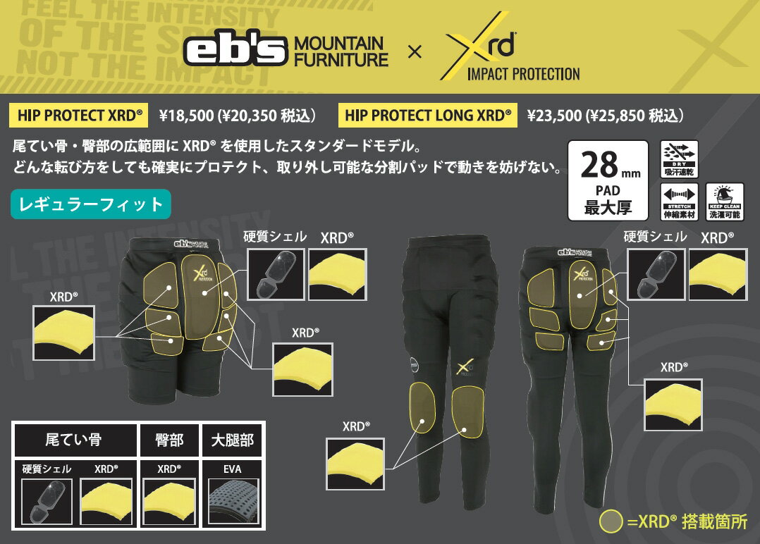eb's 【24/25・HIP PROTECT LONG XRD】エビス ヒッププロテクトロング エックスアールディー 衝撃に反応して硬化する軽量最先端衝撃吸収素材を採用した高機能モデル スキー スノーボード プロテクター プロテクション 下半身