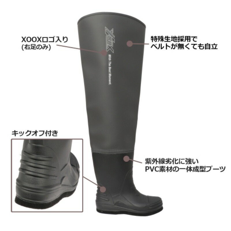 商品説明特殊な生地を使用し、ベルトが無くても自立するのでずり落ちない!歩いていても、生地が硬いなどの違和感もほとんど感じません。ベルトが付いていないので、着脱しやすく、引っ張られる煩わしさもありません。軽快に渓流釣りやバス釣りをお楽しみいただけます。[エックス・オー・エックス][22new04]ITEM INFORMATION・紫外線劣化に強いPVC素材の一体成型ブーツ・フェルトソールに施された特殊形状のラバーがフェルトの摩擦を抑えグリップ力アップ・コンパクトに収納可能カラーダークグレーサイズL素材1(本体)PVC素材2(ブーツ)PVC、フェルトソールタイプフェルトラバー替ソール対応×ウェーダータイプヒップウェダー足タイプ先丸ブランドXOOXベルトレスヒップウェーダー フェルトラバーソール L ダークグレーJAN4996774111362