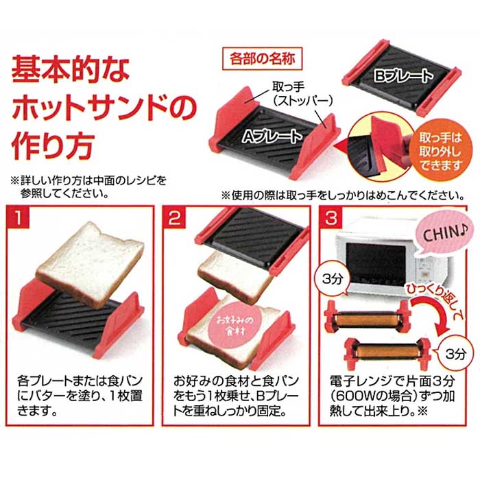 ホットサンドメーカー レンジ用 レシピ付き 1枚 ホットサンド サンドイッチ レンジ調理 焼き目 焦げにくい 失敗しにくい 簡単調理【▲5】/レンジで出来ちゃうホットサンドメーカー