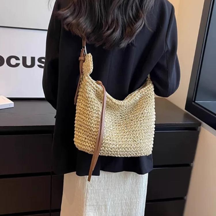 長さは調節可能夏の旅行のサブバッグにもピッタリ天然素材なのにエレガント!「上品な可愛さと女らしい」しっかり丈夫な素材をぎゅっと編み込みましたこの夏のテッパンアイテム!普段使いしやすいデザインだからリゾートじゃなくても使用OK。ヘビロテ間違いなしのバッグです。2Way設計だから、ショルダー紐の長さを調節して斜めがけバッグとしてもご利用頂けます。肩掛けや斜め掛けができて便利。どんな色にもなじむ中間色。キレイめ、 カジュアルどちらにも合わせやすい人気のカラーですカゴバックの定番色。明るく爽やかな印象でコーデを明るくしてくれます。たっぷり収納涼しげなメッシュ、 さらに上品さがアップ! サイズ F サイズについての説明 幅30cm 高さ約21cm マチ幅16cm重さ約0.25kg ※上記サイズは平置き実寸になります。サイズ表の実寸法は商品によって1-3cm程度の誤差がある場合がございます。(単位:cm) 素材 草 色 オフホワイト ブラウン 備考 ●サイズ詳細等の測り方はスタッフ間で統一、徹底はしておりますが、実寸は商品によって若干の誤差(1cm~3cm )がある場合がございますので、予めご了承ください。 ●製造ロットにより、細部形状の違いや、同色でも色味に多少の誤差が生じます。 ●パッケージは改良のため予告なく仕様を変更する場合があります。 ▼商品の色は、撮影時の光や、お客様のモニターの色具合などにより、実際の商品と異なる場合がございます。あらかじめ、ご了承ください。 ▼生地の特性上、やや匂いが強く感じられるものもございます。数日のご使用や陰干しなどで気になる匂いはほとんど感じられなくなります。 ▼同じ商品でも生産時期により形やサイズ、カラーに多少の誤差が生じる場合もございます。 ▼他店舗でも在庫を共有して販売をしている為、受注後欠品となる場合もございます。予め、ご了承お願い申し上げます。 ▼出荷前に全て検品を行っておりますが、万が一商品に不具合があった場合は、お問い合わせフォームまたはメールよりご連絡頂けます様お願い申し上げます。速やかに対応致しますのでご安心ください。