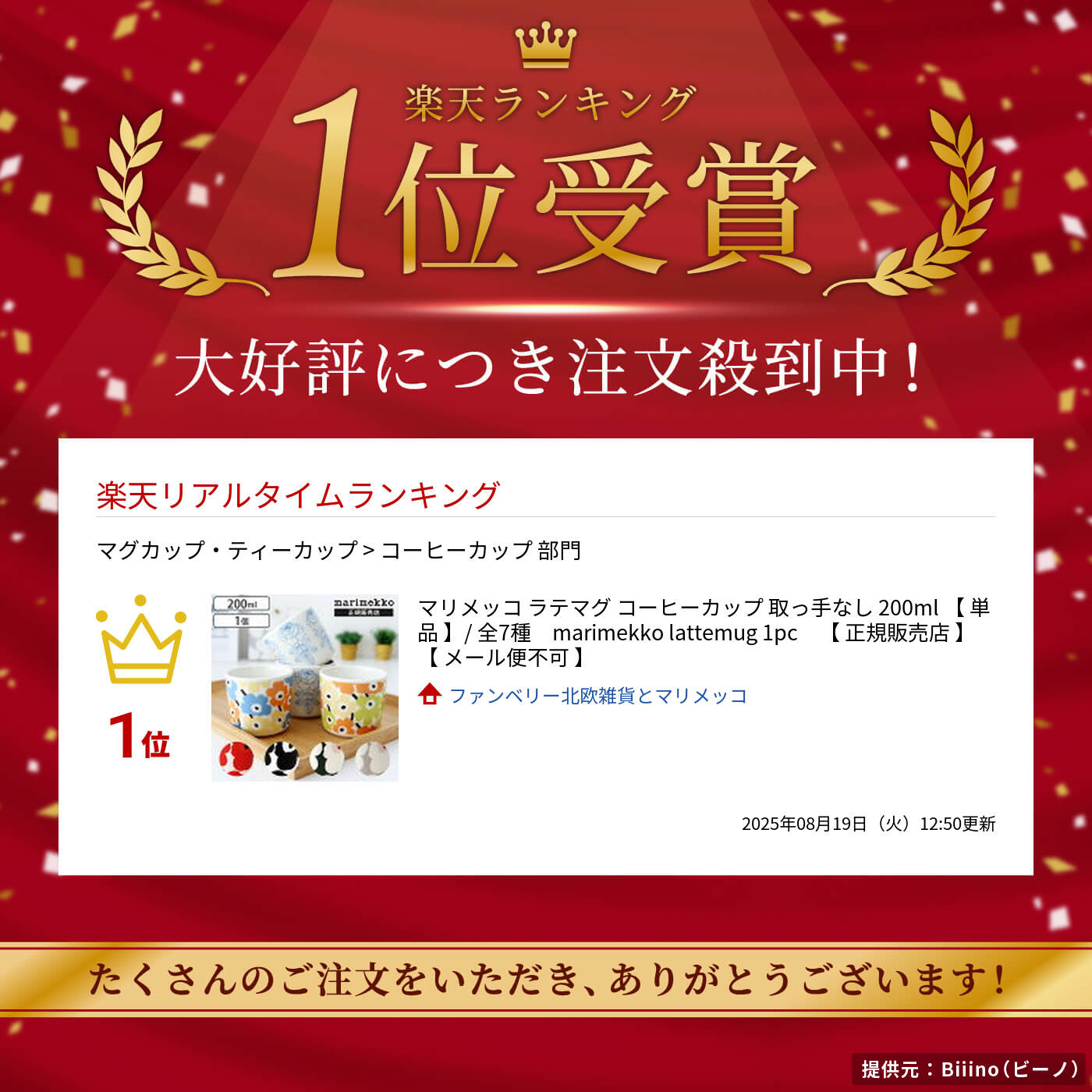 【製品仕様】 ■サイズ:約φ7.5×約H7.0(cm) 単品 ■容量:約200ml ■素材: 磁器 ■原産国:タイ ■ブランド:marimekko(マリメッコ) ■食洗機、電子レンジ、オーブン、冷凍庫:可 ▲マリメッコラテマグにはコチラの蓋がぴったり! ▲マリメッコ マグをすべて見る ▲贈り物に最適な公式ショッピングバッグ ■コメント: こちらのコロンと丸みがあり手になじむサイズのカップは、通称「ラテマグ」とも呼ばれ近年人気のアイテム。コーヒーカップとしてはもちろん、ヨーグルトやデザートを入れたりと様々な用途で使えて重宝します。別売りの凹み木蓋を使えば小物入れにもなります。引っ越し祝いや結婚祝いなど、大切な人へのギフトとしてもおすすめです。こちらのコロンと丸みがあり手になじむサイズのカップは、通称「ラテマグ」とも呼ばれ近年人気のアイテム。コーヒーカップとしてはもちろん、ヨーグルトやデザートを入れたりと様々な用途で使えて重宝します。別売りの凹み木蓋を使えば小物入れにもなります。引っ越し祝いや結婚祝いなど、大切な人へのギフトとしてもおすすめです。 ▲マリメッコラテマグにはコチラの蓋がぴったり! ▲贈り物に最適な公式ショッピングバッグ ▲マリメッコ マグをすべて見る ▲マリメッコ キッチンアイテムを全て見る ▲マリメッコを全て見る ▲北欧で愛され続けるスティグ・リンドベリ ▲高級感のある、チルウィッチのランチョンマット ▲おしゃれなデザインシュガーはおもてなし&ギフトにも!