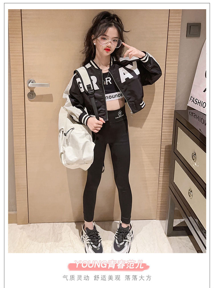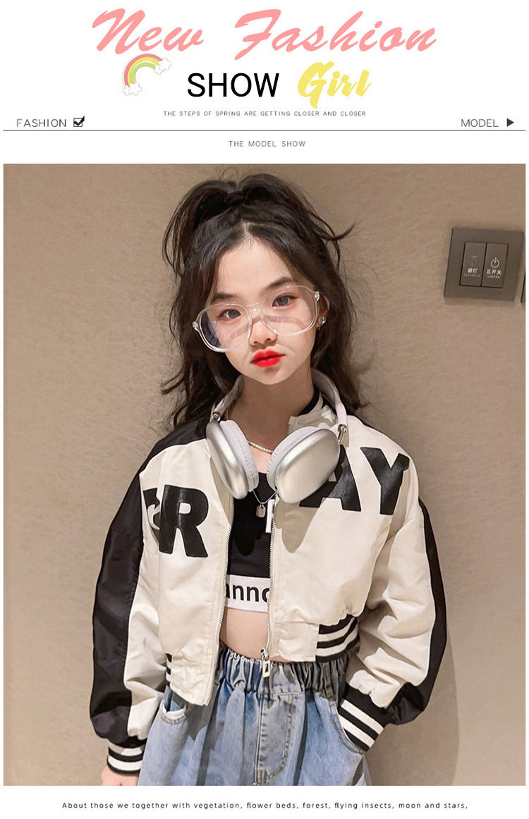 韓国子供服 スタジャン 女の子 ジャケット カジュアル アウター トップス ジャンパー ガールズ 可愛い コート へそ出し オシャレ キッズダンス ヒップホップ ストリート系 ステージ衣装 ガールズ ジャッズ 演出服 発表会 応援団 カッコイイ レディース DANCE 110-170cm