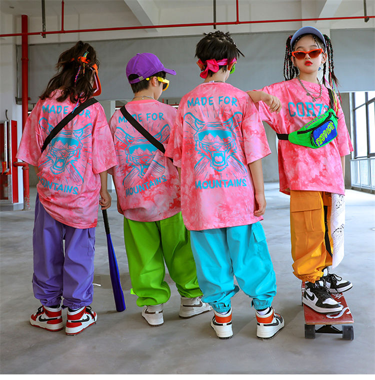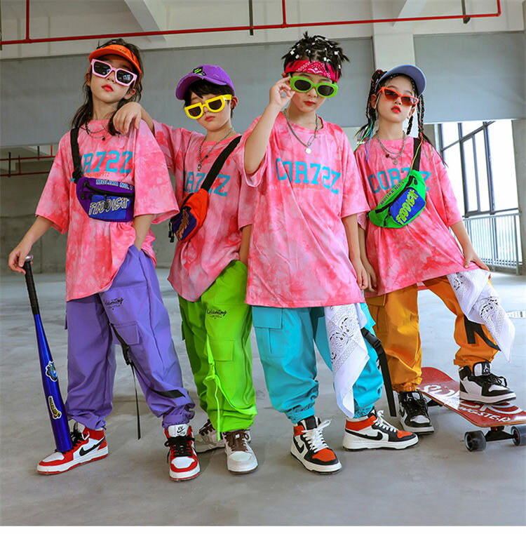 タイダイ ピンク キッズ ダンス hiphop Tシャツ パープル イエロー グリーン ブルー ズボン ダンス衣装 女の子 男の子 ストリート系 原宿系 派手 ガールズ ジャッズ 日常着 ジュニア カッコイイ jazz K-POP オシャレ 団体服 応援団 発表会 イベント 110-170