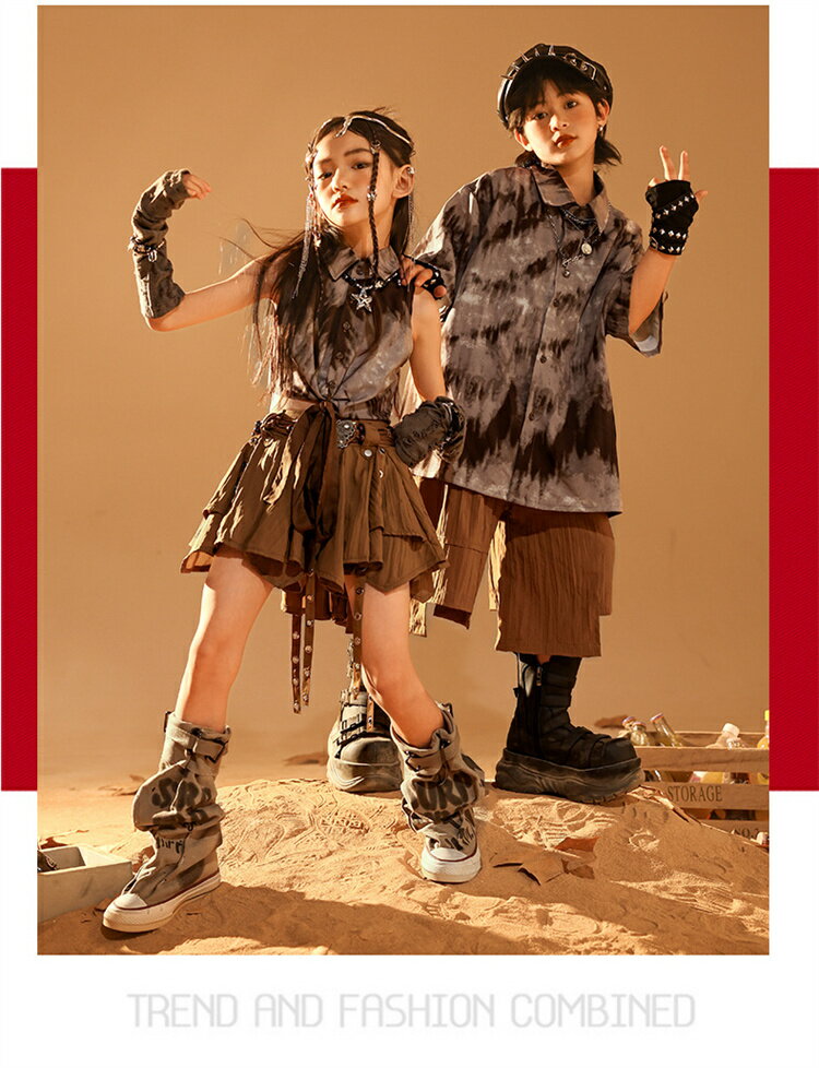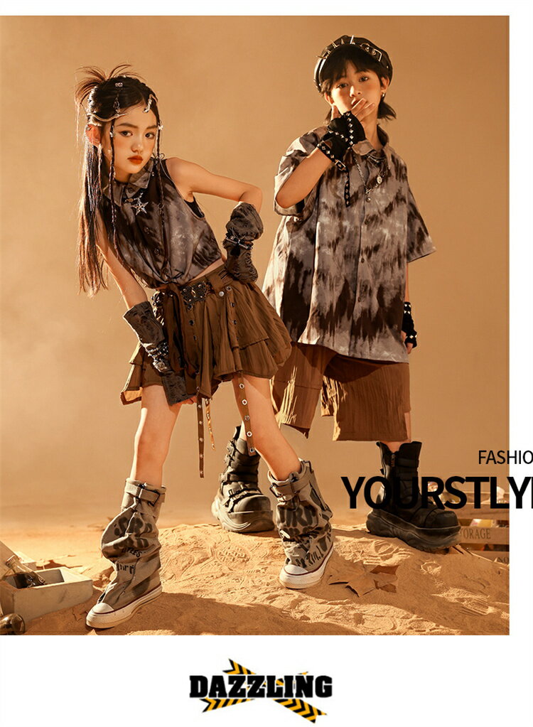 パンク風 キッズ ダンス ブラウン ヒップホップ スカート 短パンツ パンツ 女の子 男の子 ダンス衣装 ストリート系 ガールズ ジャッズ発表会 応援団 団体服 ゆったり カッコイイ jazz DJ K-POP オシャレ 110-180