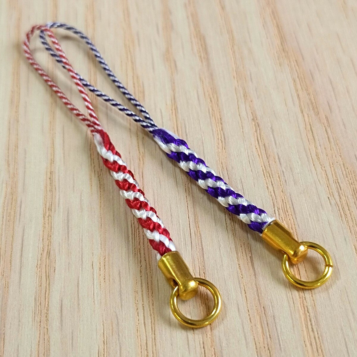 根付紐 カツラ付 丸カン付 江戸古代(赤白 紫白) ちりめん細工や手作りフィギュアに和風携帯ストラップ金具