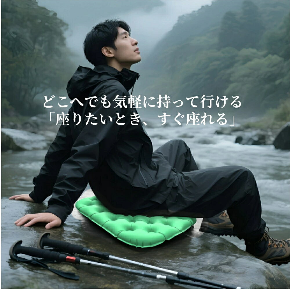 商品情報【商品の説明】この商品について●【どこでも、心地よく】弊社のエアークッションはアウトドアの達人が選んだ、軽量×快適を実現したギアです。花見やキャンプなどどこでも使える、あなたの冒険に寄り添うマルチギアです。●【どこでも活躍】「持っててよかった!」があなたの生活にプラスされます。持ち運びできるからこそどこでも活躍できます。様々なシーンであなたの役に立ってくれます。●【アウトドアの達人推薦】アウトドアギアの達人が自信をもって推奨した商品です。軽さ、コンパクトさ、座り心地はもちろんの事簡単に取り扱いができる商品です。●【簡単エア注入&逆流防止バルブ付】空気を入れやすく、好みの硬さに調節できます。●【驚きのコンパクト収納】付属の外袋にしまえば「手のひらサイズ」へ。カバンやザックに入れてもかさばりません。重量は約130g。収納時は高さ13cm、幅6cmととてもコンパクトに収納できます。【最安1100円&2個購入で】空気クッション アウトドアクッション 折りたたみ エアクッション マット 座布団 コンパクト 軽量 持ち運び 携帯 エアークッション ポケットクッション 折りたたみクッション レジャーシート お尻が痛くならない 旅行 飛行機 夜行バス イベント 送料無料 クッション 折りたたみ アウトドア 持ち運び 旅行 長距離移動 BBQ 登山 行列 運動会 便利グッズ 空気クッション エアークッション ポケットクッション ●【どこでも、心地よく】弊社のエアークッションはアウトドアの達人が選んだ、軽量×快適を実現したギアです。花見やキャンプなどどこでも使える、あなたの冒険に寄り添うマルチギアです。●【どこでも活躍】「持っててよかった!」があなたの生活にプラスされます。持ち運びできるからこそどこでも活躍できます。様々なシーンであなたの役に立ってくれます。●【アウトドアの達人推薦】アウトドアギアの達人が自信をもって推奨した商品です。軽さ、コンパクトさ、座り心地はもちろんの事簡単に取り扱いができる商品です。●【簡単エア注入&逆流防止バルブ付】空気を入れやすく、好みの硬さに調節できます。●【驚きのコンパクト収納】付属の外袋にしまえば「手のひらサイズ」へ。カバンやザックに入れてもかさばりません。重量は約130g。収納時は高さ13cm、幅6cmととてもコンパクトに収納できます。 5