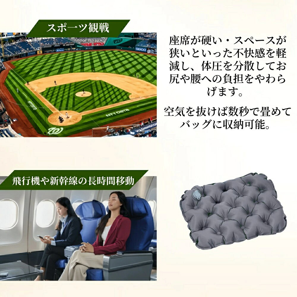 【最安1100円&2個購入で】空気クッション アウトドアクッション 折りたたみ エアクッション マット 座布団 コンパクト 軽量 持ち運び 携帯 エアークッション ポケットクッション 折りたたみクッション レジャーシート お尻が痛くならない 旅行 飛行機 夜行バス イベント