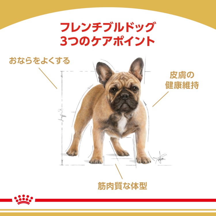 ※お一人様1個まで 【健康的な筋肉を維持】<フレンチブルドッグ 成犬〜高齢犬用>は適切なタンパク質(26%)を配合し、フレンチブルドッグの健康的な筋肉を維持します。L-カルニチン配合。 【健康的な皮膚を維持】独自のバランスで配合されたEPA・DHAなどの栄養素が健康を維持することで皮膚のバリア機能をサポートします。 【便の量と臭いを軽減】超高消化性タンパク(L.I.P.)を使用することで消化率を高め、健康的な消化を維持し、便の量と臭いを軽減します。 消化率90%以上の超高消化性タンパク (ロイヤルカナン調べ) ■内容量:3kg×4 ■原材料:米、小麦、動物性油脂、豚タンパク(消化率90%以上)、超高消化性植物性タンパク(消化率90%以上)、肉類(鶏、七面鳥)、加水分解タンパク(鶏、七面鳥)、ビートパルプ、魚油(オメガ3系不飽和脂肪酸〔EPA+DHA〕源)、大豆油、フラクトオリゴ糖、グルコサミン、マリーゴールド(ルテイン源)、加水分解軟骨(コンドロイチン硫酸源)、アミノ酸類(L-チロシン、タウリン、L-リジン、DL-メチオニン、L-カルニチン)、ゼオライト、ポリリン酸ナトリウム、ミネラル類 (Cl、Ca、K、Na、P、Mg、Zn、Mn、Fe、Cu、I、Se)、ビタミン類 (コリン、E、ナイアシン、C、パントテン酸カルシウム、B6、B2、B1、葉酸、A、ビオチン、B12、D3)、保存料(ソルビン酸カリウム)、酸化防止剤(ミックストコフェロール、ローズマリーエキス) ■保証分析値:たんぱく質:24%以上、脂質:16%以上、粗繊維:2.3%以下、灰分:6.5%以下、水分:10.5%以下、食物繊維:6.8 % ビタミン(1kg中) A32,000 IU D3800 IU E610 mg C310 mg ■原産国:フランス ■対象:フレンチブルドッグ 成犬〜高齢犬用 (生後12ヵ月齢以上) ■エネルギー:404 kcal/100g ■給与表 成犬時体重 運動しない 運動する 良く運動する (g) (カップ) (g) (カップ) (g) (カップ) 8 kg 112 g 1+5/8 130 g 1+7/8 147 g 2+1/8 9 kg 122 g 1+6/8 142 g 2 161 g 2+2/8 10 kg 132 g 1+7/8 153 g 2+1/8 174 g 2+4/8 11 kg 142 g 2 164 g 2+3/8 187 g 2+5/8 12 kg 152 g 2+1/8 176 g 2+4/8 200 g 2+7/8 14 kg 170 g 2+3/8 197 g 2+7/8 224 g 3+2/8 1カップの目安 200ml=70g ※ここに表示されている給与量は使用開始時の目安です。個体差や活動量に応じて表を参考に、1日の給与量を1〜数回に分けて与えてください。※新鮮な水をいつでも飲めるようにしてあげてください。※急いで食べてしまう傾向のある愛犬に対しては、のどにつまらせないように注意してください。 [ブランド別][R][ROYAL CANIN(ロイヤルカナン)][JAN: 3182550811637]