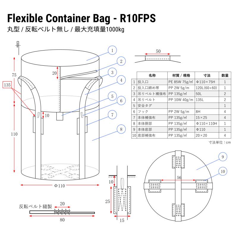 フレコンバッグ 1t 1m3 丸型 1100×1100 10枚入 反転ベルト無し UVカット