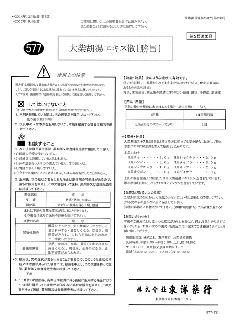 【第2類医薬品】577:大柴胡湯(だいさいことう)エキス散〔勝昌〕100g(100g×6本):胃炎、常習便秘、高血圧や肥満に伴う肩こり・頭痛・便秘、神経症、肥満症 漢方薬 漢方 東洋 東洋薬行