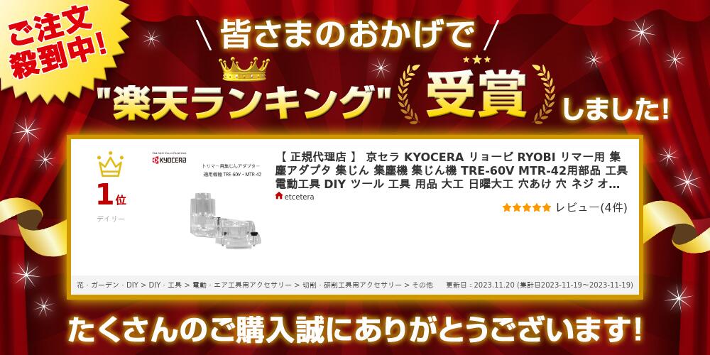 【25人に1人当たる★全品半額のチャンス!24〜25日迄】 【 正規代理店 】 京セラ KYOCERA リョービ RYOBI リマー用 集塵アダプタ 集じん 集塵機 集じん機 TRE-60V MTR-42用部品 工具 電動工具 DIY ツール 工具 用品 大工 日曜大工 穴あけ 穴 ネジ オプション