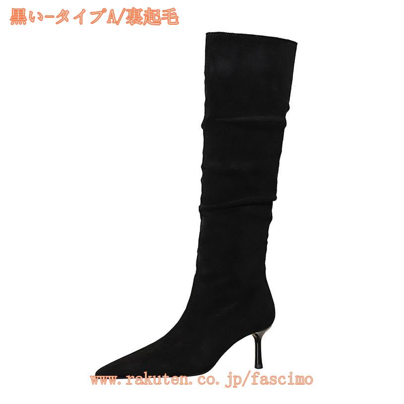 777円OFFクーポン ブーツ レディース ポインテッドトゥ ピンヒール ストレッチ ロングブーツ 5.5cmヒール 細ヒール ハイヒール ブラック 黒 ベージュ オフィス 通勤 痛くない 疲れない 歩きやすい ジョッキーブーツ 秋冬 とんがりトゥ 美脚 女子会 fascimo