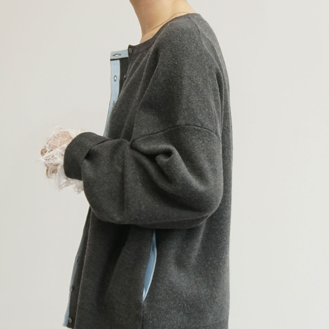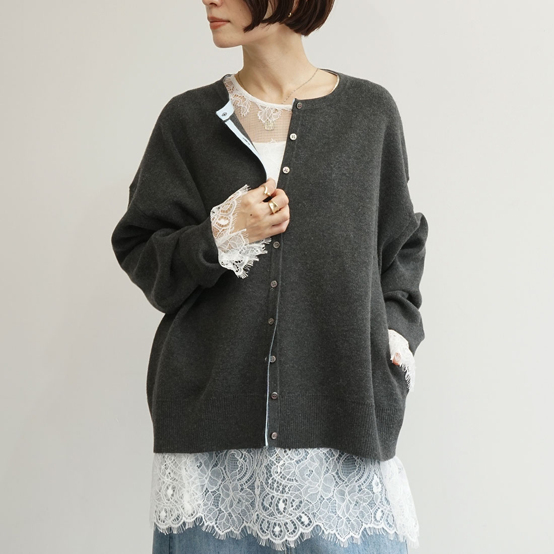 「バイカラークルーカーディガン 」 ■Detail ふっくらと空気を含むスムース編みで、 ペラつかず、上品な立体感をキープ。 前立て裏とポケットの配色がちらりと覗く、 さりげない遊び心も魅力です。 しっかりしているのに驚くほど柔らか。 シルク混の素材で肌に触れるたび、なめらかで心地よい。 大人の日常を品よく包み込むカーディガンです。 ■2色展開 ・ピンク ・チャコール ■サイズ フリーサイズ ■着用モデル身長160cm ■商品詳細 ・素材:45%polyester 31%nylon 15%cotton 5%wool 4%silk ・厚み: □薄手 ■普通 □厚手 ・透け感:■なし □あり ・伸縮性:□なし ■あり ・裏地:■なし □あり ・重さ 540g ■洗濯方法 **30°を限度とし手洗いによる洗濯処理可能 **タンブル乾燥不可 ■Attention カラー、サイズ、品質について サイズは平置き、メジャー採寸を行っております。 実寸は測り方によって(1~3 cm前後)に誤差が生じる場合がございますがので、予めご了承ください。 商品画像はサンプルのため、色味やサイズ等の仕様に変更がある場合がございますので、予めご了承ください。 【合わせのレースはこちら】 【合わせのブラウスはこちら】 5002409 TK530051 FASHFREN