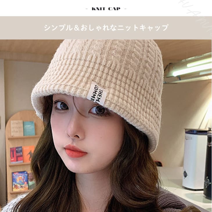 商品紹介ふんわり厚手のリブ編みニットビーニー。ほどよくボリューム感のある柔らかい編み地で、被るだけで暖かく優しい印象に。控えめなロゴタグがさりげないアクセントになり、カジュアルからきれいめまで幅広いコーデに馴染みます。浅めに被って後ろへ倒すだけでこなれ感が出るので、寝癖隠しや小顔見せにもぴったり。デイリーに使えるあたたかさと扱いやすさが魅力です。スペックサイズ:- フリーサイズ(対応頭囲:約54〜58cm)- 幅:約54cm/高さ:約22cm※手作業での採寸のため若干の誤差が生じる場合があります。伸縮性がありフィット感のある作りです。カラー:- ベージュ(ホワイト系)- ピンク(くすみピンク)- グレー(ライトグレー)- ブラック- ブラウン※画像と実物ではモニター環境により色味が若干異なる場合があります。素材:- ふんわり柔らかなニット素材(アクリル混等のウールタッチ素材を使用)- 肌あたり優しく、保温性のある厚手の編地※正確な素材表記は商品タグに従ってください(海外製のため表記が異なる場合があります)。注意事項・輸入時期や製造ロットにより、同じ柄でも色味やサイズに違いが生じる場合がございます。・モニターや撮影環境により、実際の商品の色と若干異なる場合がございます。・海外製品につき、日本製品より縫製が甘い、糸のほつれ・ゆがみ・若干の汚れ等ある場合がございます。・ご注文後、在庫切れや入荷遅延が生じることがございますので、余裕をもってご注文ください。・使用時の破損や事故等につきましては責任を負いかねます。・輸入品の為、輸送の際に生じるキズ・汚れ・箱潰れがある場合がございますが新品です。・サイズ・重量は、多少の誤差が生じる場合がございます。・手作業による採寸のため、多少の誤差はご了承ください。・あくまで画像はイメージですので、商品改良の為パッケージや一部仕様が少し変更になる場合もございます。・お使いのブラウザや設定により、画像と実際の商品との若干の色の違いが生じる場合がございます。・できるだけ商品と同じ色目を出すよう努力しておりますが、表示画面等の違いから現物と色の違いが生じる場合がございます。ご了承くださいませ。 上記ご理解の上、ご購入をお願いいたします。