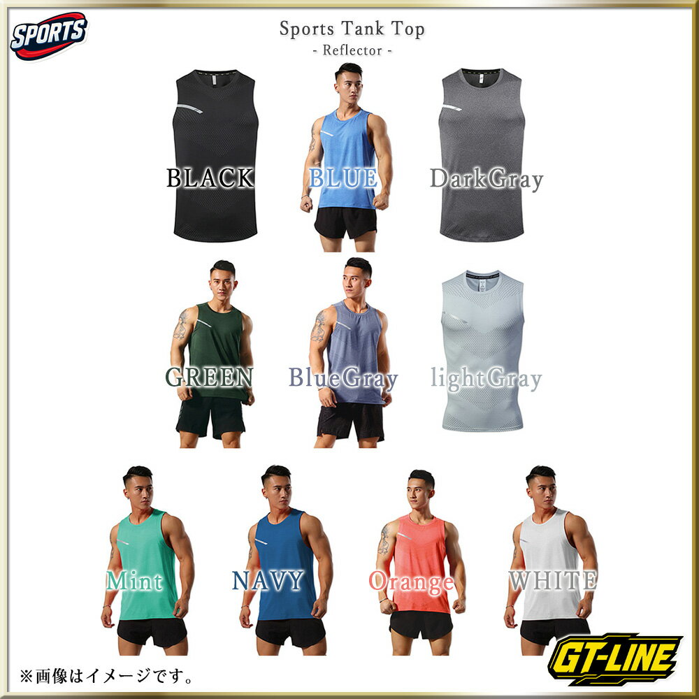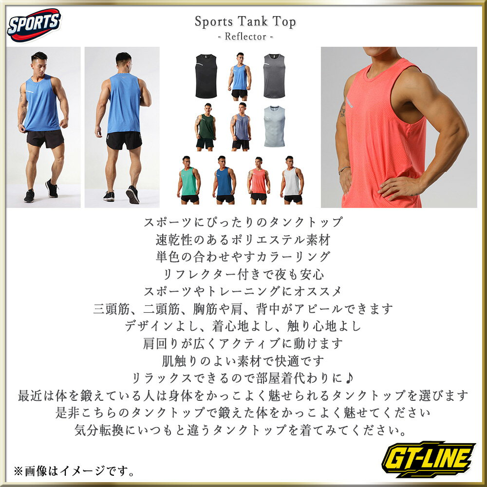 タンクトップ スポーティー SPORTS ランニング 筋トレ ジム ノースリーブ ジム着 ポリエステル マッチョ 男性 トレーニング 海 プール 夏 ビーチ リフレクター 反射板 おしゃれ GT-LINE Favolic