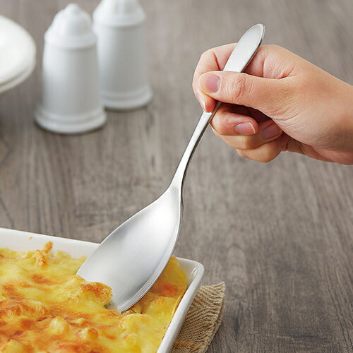 特長 卓上で大皿料理を取り回すのにちょうどよいサイズのとりわけスプーン。 煮物や麻婆豆腐、デザートなどの大皿料理を取り分けるのに便利です。 皿部のフチが低く平たい形状なので、手首を返さず横からお皿に沿わせるだけで、料理が一度にたっぷりすくえます。 フチで料理をカットしながら取り分けることもできます。 別売のとりわけフォークと合わせると、サラダサーバーのように使えたり、パスタの取り分けにも便利です。 サビにくく、耐熱性に優れた18-8ステンレスを使用。色や匂いも付きにくく、衛生面でも優れています。 仕様 サイズ:約W6.2×H22.4cm 素材:18-8ステンレス 生産国:日本 食洗機対応 こんなサービングカトラリーをお探しの方におススメ! カテゴリ キッチンアイテム 調理アイテム 料理アイテム 便利アイテム おすすめアイテム キッチングッズ 調理グッズ 便利グッズ 料理グッズ キッチン道具 調理道具 料理道具 サービングツール サービングカトラリー サーブツール サーブ用ツール サーバースプーン サービングスプーン サービススプーン 取り分けスプーン 大きなスプーン 大きいスプーン ビッグスプーン ブランド・メーカー 家事問屋 カジドンヤ かじどんや KAJIDONYA 下村企販 下村企販株式会社 用途 取り分け とりわけ 切り分け 切りわけ 調理 料理 混ぜる 和える よそう すくう 掬う 素材 ステンレス 18-8ステンレス サイズ W6.2cm H22.4cm 大きい 産地 日本 日本製 国産 made in Japan 新潟県 新潟県 燕市 燕三条 燕 特徴 錆びにくい 乾きやすい サイズ展開 便利 重宝 使いやすい 耐久性 錆びにくい 持ちやすい 機能 食洗機対応 食洗機OK イメージ おしゃれ シンプル スタイリッシュ 高級感 重量感 かわいい 可愛い 安っぽくない 機能美 マット ツヤ消し つや消し 艶消 ツヤ無し つや無し 艶無し 毎日使いたい スタメン レギュラー ノンストレス 人気 おすすめ 高評価 好評価 あると便利 買って良かった カラー シルバー 銀色 ぎんいろ ぎん マットシルバー ユーザー 料理好き 料理人 初心者 プロ 大人 子ども 子供 シニア ワーキングマザー ワーママ 専業主婦 キャンパー シーン キッチン テーブル 食卓 キャンプ アウトドア クッキング バーベキュー BBQ 一人暮らし ひとり暮らし お手伝い 屋外 パーティー 結婚式 ファーストバイト サンクスバイト ラストバイト ウェディングケーキ 大皿料理 ラザニア グラタン ギフト 贈り物 プレゼント ギフト 卒業祝い 就職祝い 入学祝 母の日 父の日 敬老の日 クリスマス お祝い 引き出物 結婚祝い 結婚記念日 ブライダルギフト 出産祝い 誕生日プレゼント 誕生祝い 引っ越し祝い 引越し祝い 新築祝い 開店祝い家事問屋 とりわけスプーン 22 大皿料理の取り分けに便利なスプーン。 シンプルで「使いやすい」家事道具を 次々と生み出している家事問屋。 卓上で大皿料理を取り回すのに ちょうどよいサイズのとりわけスプーンです。 皿部のフチが低く平たい形状なので、 手首を返さず横からお皿に沿わせるだけで、 料理が一度にたっぷりすくえます。 煮物や麻婆豆腐、デザートなどの 大皿料理を取り分けるのに便利です。 フチで料理をカットしながら 取り分けることもできます。 サビにくく、耐熱性に優れた 18-8ステンレスのカトラリー。 色や匂いも付きにくく衛生的なので いろいろなお料理のとりわけに 活躍してくれますよ。 合わせて使うとさらに便利! 別売のとりわけフォークと合わせると、 サラダサーバーのように使えたり、 パスタの取り分けにも便利です。 とりわけフォーク22 はこちら>> とりわけスプーン22と とりわけフォーク22は ぴったりと重ねて収納できます。 家事問屋のとりわけ道具。 「とりわけスプーン22」の他に、 一回り大きなスプーン・フォークや、 取り分け用のトングもあります。 シーンに合わせてお好みのものを お選びくださいね。 ①とりわけスプーン22(現在のページ) ②とりわけフォーク22 はこちら>> ③とりわけスプーン24 はこちら>> ④とりわけフォーク24 はこちら>> ⑤とりわけトング はこちら>> 家事問屋の道具たちと、心地よい暮らしを。 機能・素材・サイズを整えた 良質な家事問屋の道具たちには、 たくさんのこだわりが詰まっています。 その一つ一つの工夫が、 使っていて納得のいくことばかり。 毎日のように使うこだわりの家事道具は、 より心地よく暮らすための 手助けとなってくれますよ。 家事問屋のお話 金物加工の産地である新潟県燕市で 「ずっと使いたい」家事の道具を 「ずっと」作り続けている「家事問屋」。 「ありきたり、なのに使いやすい」をコンセプトに シンプルだけど、しっかりとした作りで ずっと使える商品を数多く作っています。 ↓ 家事問屋 商品一覧はこちら ↓