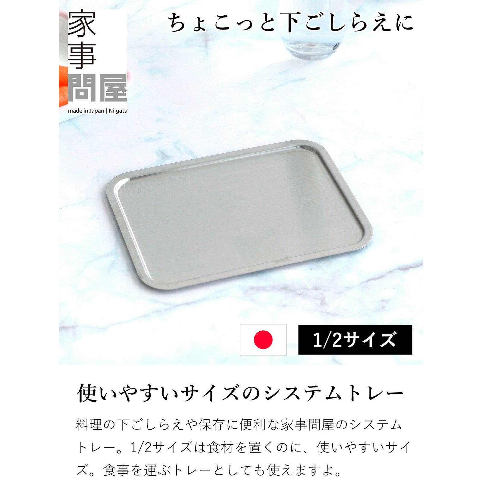 家事問屋 システムトレー 1/2 トレー ステンレス 角型 ステンレストレー 下ごしらえ 薄型 コンパクト スリム 食洗機対応 日本製 44267