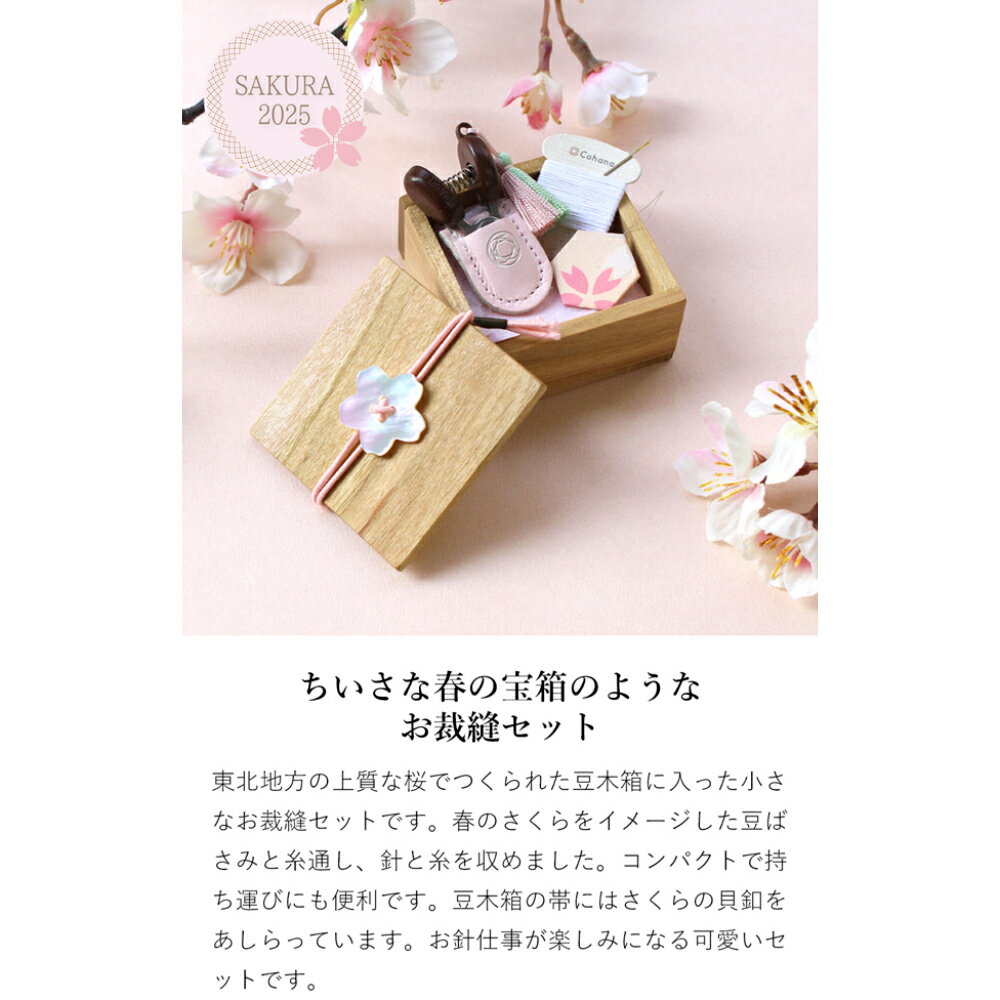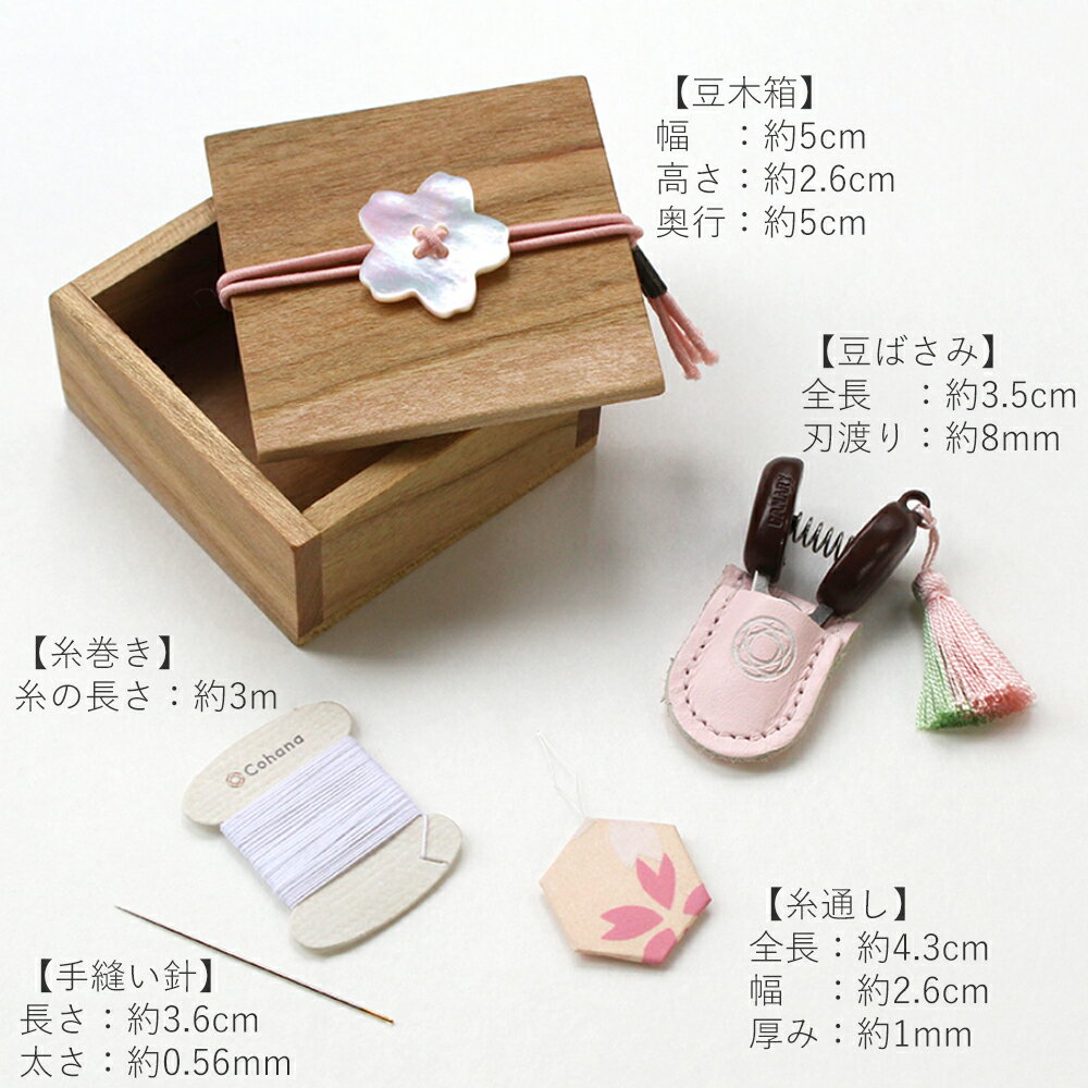 Cohana 豆木箱の裁縫セット さくら 限定デザイン 関の豆ばさみ SAKURA 小さなハサミ 糸切りばさみ 糸通し 糸 針 ソーイングセット 日本製 Made in Japan コハナ 裁縫道具