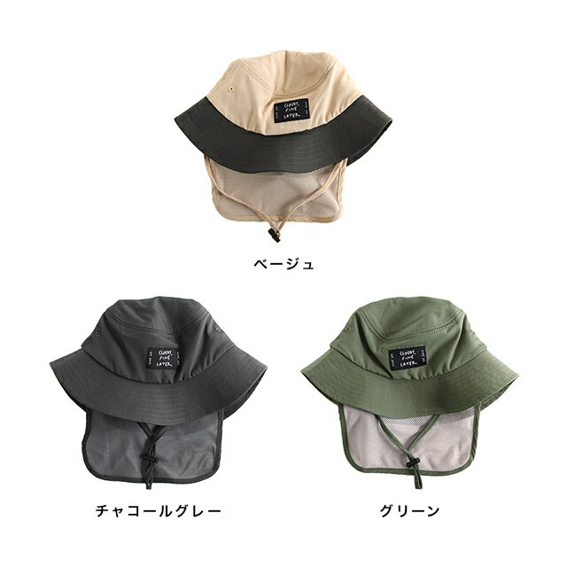CLOUDY,FINE LATER メッシュサンシェード付きハット 522-569020(子供 帽子 メッシュ 日よけ ゴム付き あご紐 日除け帽子 子ども アウトドア ハット 男の子 かっこいい おしゃれ 無地 ロゴ ナイロン つば広 シンプル 春 夏 春夏 子供用 50cm 52cm 54cm ベージュ グレー)