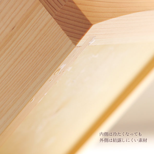 木曽の針葉樹で製作された「asahineko」シリーズから、ひのきのボトルクーラーが登場。 ボトルが2本入るよう設計されたダブルサイズです。 「asahineko」とは、岐阜県中津川市付知町で育つ木曽五木といわれる地元の針葉樹、 あすなろ、さわら、ひのき、ねずこ、こうやまき、を使った生活道具の総称です。 デザイナーは村澤一晃氏。 このボトルクーラーは、針葉樹の柔らかさと軽さを活かし、肉厚で手触りの良いディテールが特徴です。 おおらかな曲面が木材独特の「木目紋様」を浮かびださせています。 内側には拭き漆を施し、防水性を高めるとともに、ひのきの地肌とのコントラストを楽しむ事のできるアイテムです。 サイズ:幅28.5×奥行17×高さ20cm 材質:ひのき、内側拭き漆仕上げ 容量:満水容量5L 送料無料でお届けいたします。(沖縄県を除く)木曽の針葉樹で製作された「asahineko」シリーズの、ひのきのボトルクーラー。 ボトルが2本入るよう設計されたダブルサイズです。 「asahineko」とは、岐阜県中津川市付知町で育つ木曽五木といわれる地元の針葉樹、あすなろ、さわら、ひのき、ねずこ、こうやまき、を使った生活道具の総称です。 デザイナーは村澤一晃氏。 このボトルクーラーは、針葉樹の柔らかさと軽さを活かし、肉厚で手触りの良いディテールが特徴です。 おおらかな曲面が木材独特の「木目紋様」を浮かびださせています。 内側には拭き漆を施し、防水性を高めるとともに、ひのきの地肌とのコントラストを楽しむ事のできるアイテムです。 1本用 シングルは右の画像をクリックしてください。 輝く木肌と落ち着きのあるデザインが、食卓を美しく彩ります。 ワインやシャンパンクーラーとして、アイスペールとして。高級感溢れる asahineko ボトルクーラーをお楽しみください。 レストランやバーなど、他とは一味違った雰囲気作りを目指す飲食店様にもおすすめです。 −ご注意− ○無垢の木材は呼吸をしています。 そのため、乾燥や吸湿により収縮を繰り返しますので反りや割れ、変色を生ずることがあります。 なお、天然素材のため同じ色、木目等はありませんので素材の個性としてお楽しみください。 木目による返品、交換はお受けできません。 ・直射日光やエアコンの風があたるところに長時間放置しないでください。 ・食洗機・乾燥機はご使用になれません。 ○針葉樹の特性は、柔らかく、樹脂を含むことです。 樹脂は腐敗から身を守りますが、揮発することにより表面で固まり、ヤニとなる場合があります。 このヤニは人体に害はありません。 〇本品は、針葉樹(桧)素材です。桧の特性として「ヤニ」が出ます。 この「ヤニ」は、木が生きている「証」です。 「ヤニ」は気温や温度差により木の表面に浮き出ることが有ります。 お届けさせて頂く品は、表面にウレタン塗装が施してあり、この「ヤニ」が表面に浮き出ることが有りませんが、 木とウレタン塗装の間に「滲み」や「膨らみ」が生じることがございます。 桧本来の性質と天然素材の特性・風情としてご了解の上、ご使用ください。 ・重いものを乗せたり、固いブラシ等でこすると傷がつくことがあります。 ・使用していないときは、日陰で風通しの良いところで保管することでヤニが発生しにくくなります。 ・発生したヤニは、アルコールで拭いてください。シミは残りますがベタつきは取り除くことができます。 ・長時間水につけたまま、入れたままにしないでください。 ・使用後は水分をよく拭き取り、乾燥させ日陰で保管をしてください。 ・漆は時間をかけて透明度が増します。長時間ものを載せたままにすると跡がつくことがあります。 Eau・オー HYDRA包丁立て Eau CHOPSTICKREST チョップスティックレスト Eau BUTTERFLY MUG TREE バタフライマグツリー Eau・オー ROTHKO ロツコ キッチントレイ asahineko・アサヒネコ NABESIKI・鍋敷 asahineko・アサヒネコ 枝 五木箸置き ambai 土佐板 銀杏 角 asahineko・アサヒネコ 木器・ボトルクーラー メトレフランセ アイストレイ 8 large cubes asahineko アサヒネコ アイスペール 漆
