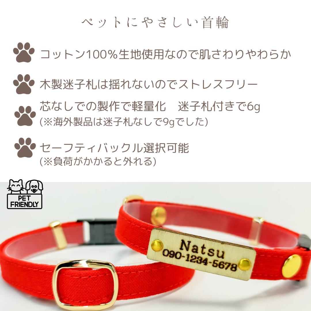 Felesto 迷子札付き 猫用首輪 レッド 赤 オーダーメイド 猫 日本製 国産 首輪 猫首輪 迷子札 バックル おしゃれ 名入れ 超軽量 ネームタグ 迷子札付猫首輪 ねこ 犬 小型犬 軽い ペットグッズ 刻印ネームタグ 安心安全 コットン 安全 可愛い ストレスフリー 1個販売