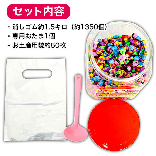 ミニサイズのどうぶつのキュートな消しゴム。専用おたまで上手にすくってね★約1350個入っているので、たくさんのお子様にゲーム感覚で楽しんでもらえます。お土産用の袋も入っているよ!【セット内容】※消しゴム約1.5キロ(約1350個)※専用おたま1個※お土産用袋約50枚◆対象年齢6歳以上※消しゴムの色・柄の指定はできません◆販売単価1800円(1980円税込)◆参考上代オープンプライス◆商品サイズ約20x12x12cm※外装【関連】景品 子供 景品セット おもちゃ 玩具 子供会 夏祭り 問屋 イベント 販促 ゲーム 屋台 文化祭 子供会 景品 こども おもちゃ お祭り おまけ 祭り まつり 屋台 縁日 露店 子ども会 夏祭り 問屋 卸 東京【フェスティバルプラザ】※ご注文の前に必ずお読み下さいこちらの商品は業務用商材の為、不良品であっても返品・メーカー対応は一切できません。また、色柄やセット内容が予告なく変更になる場合がございます。一般のお客様は以上をご了承の上、ご購入を検討ください。販売目的で大量購入されるお客様は、不良リスクが出ることをふまえた上でご注文ください。不明な点などにつきましてはお気軽に弊社までお問い合わせ下さい。